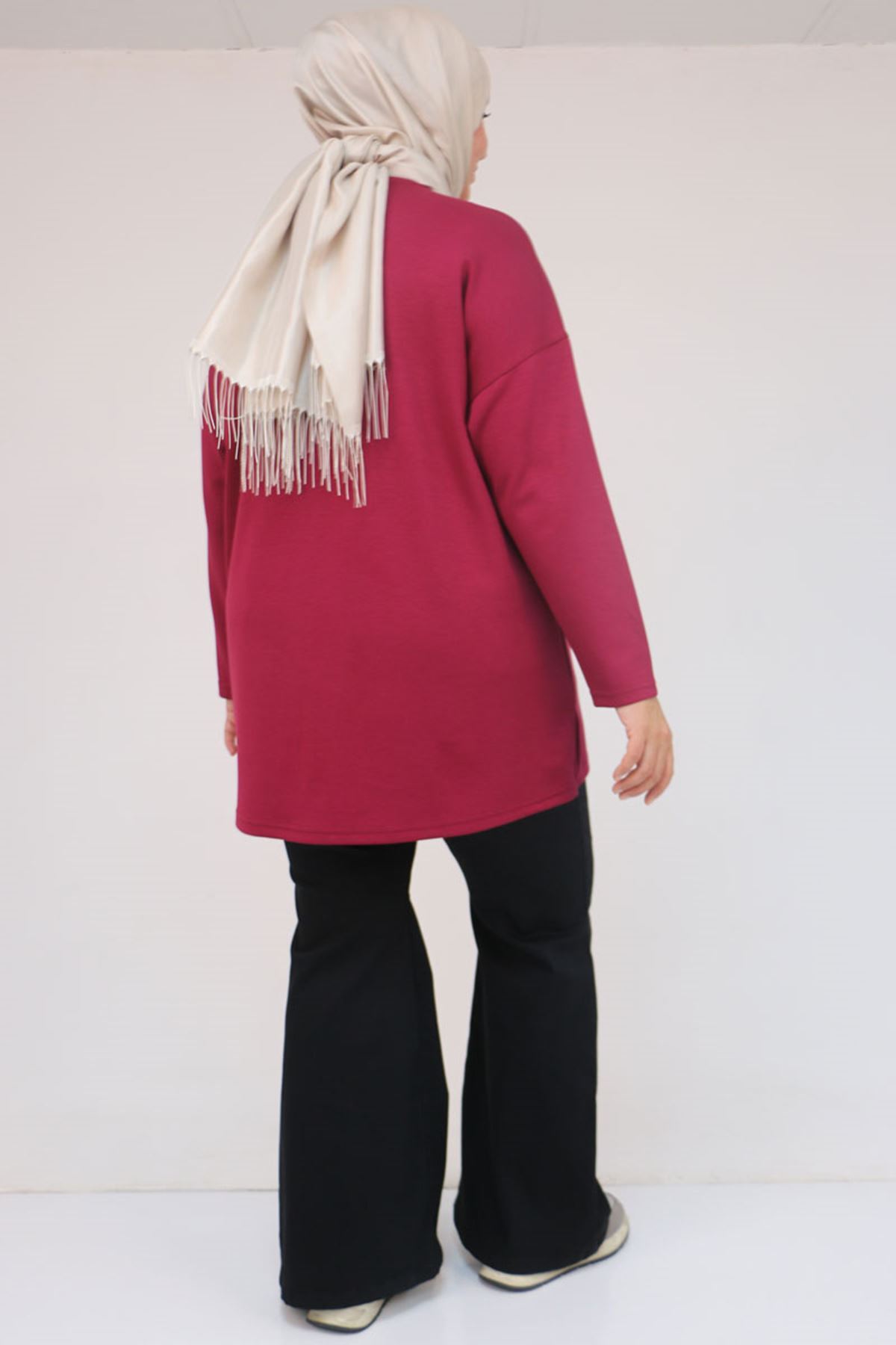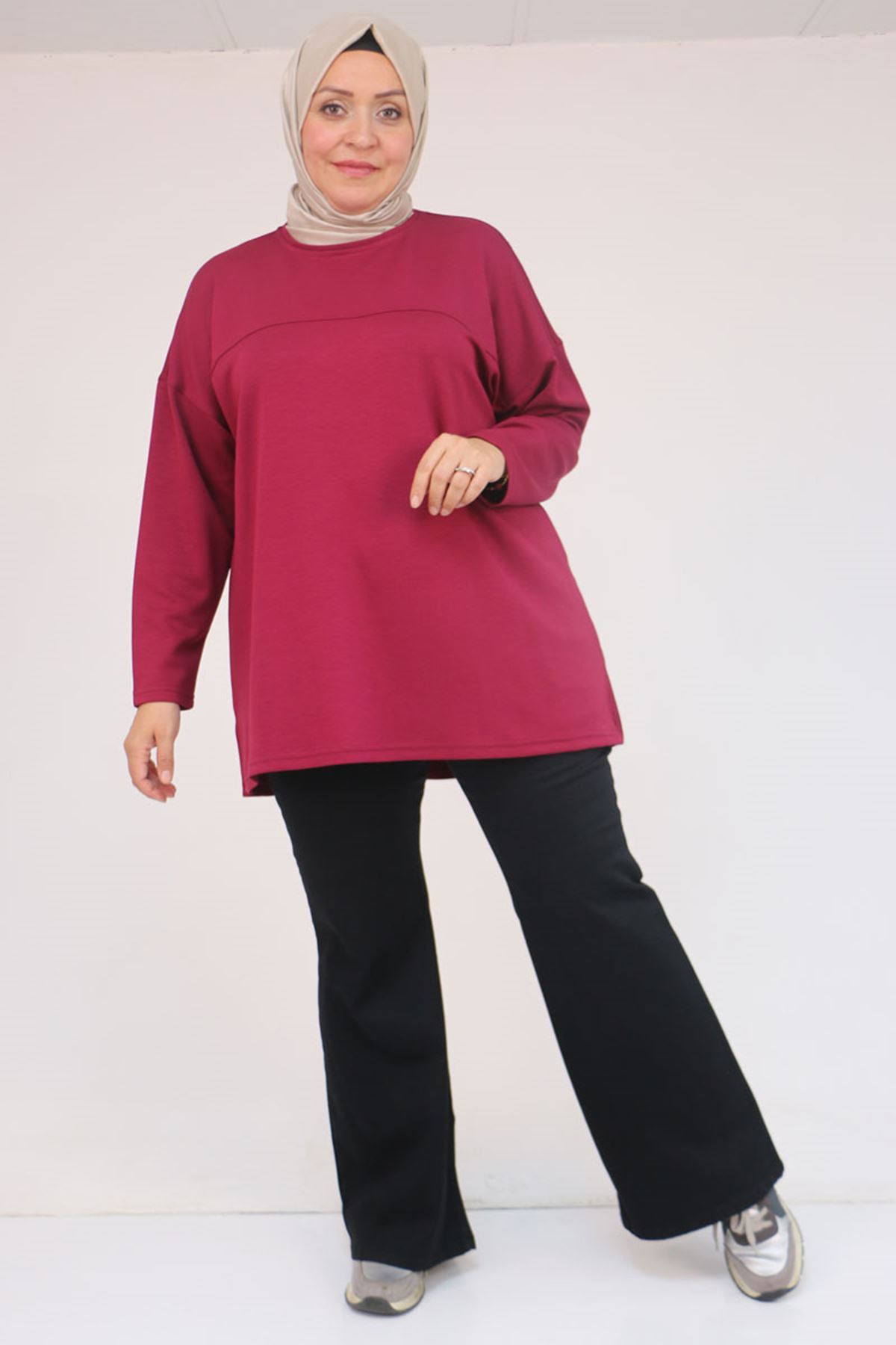 58132 Büyük Beden Önü Çıma Detaylı Yanı Yırtmaçlı Modal Tunik - Bordo