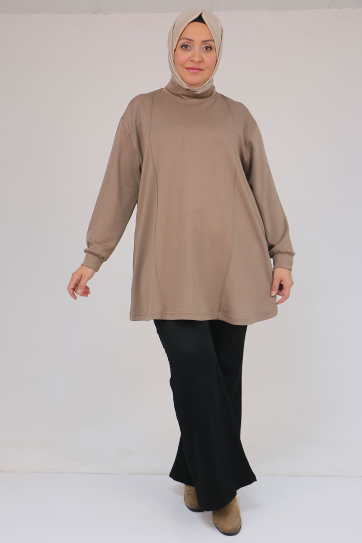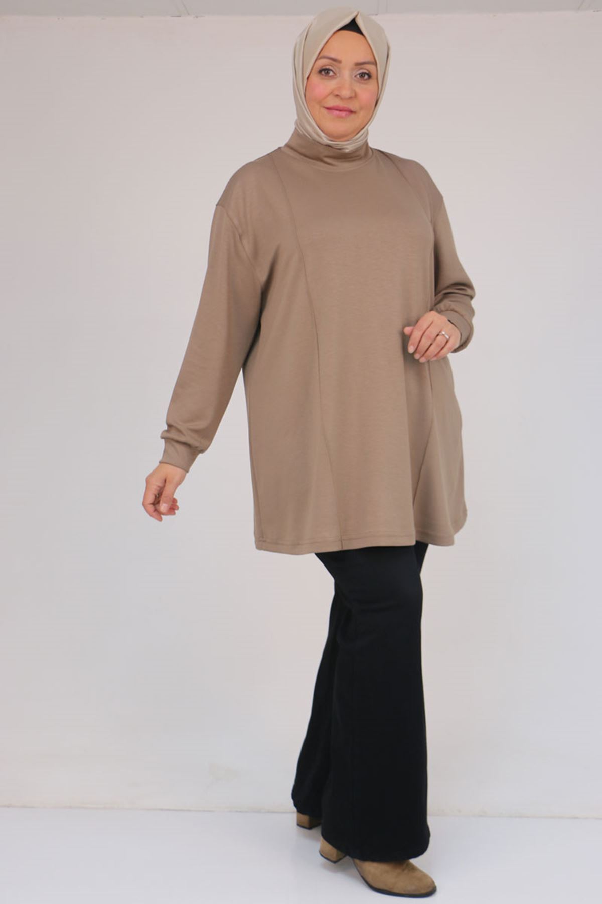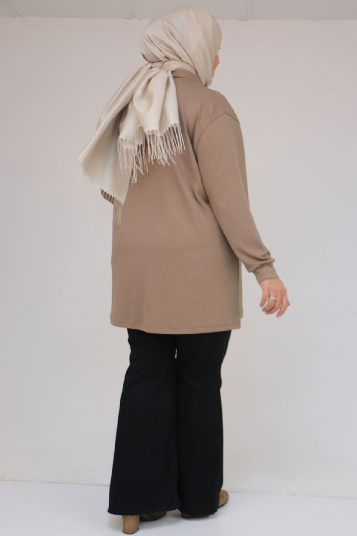 58134 Büyük Beden Boğazlı Yaka Modal Tunik - vizon