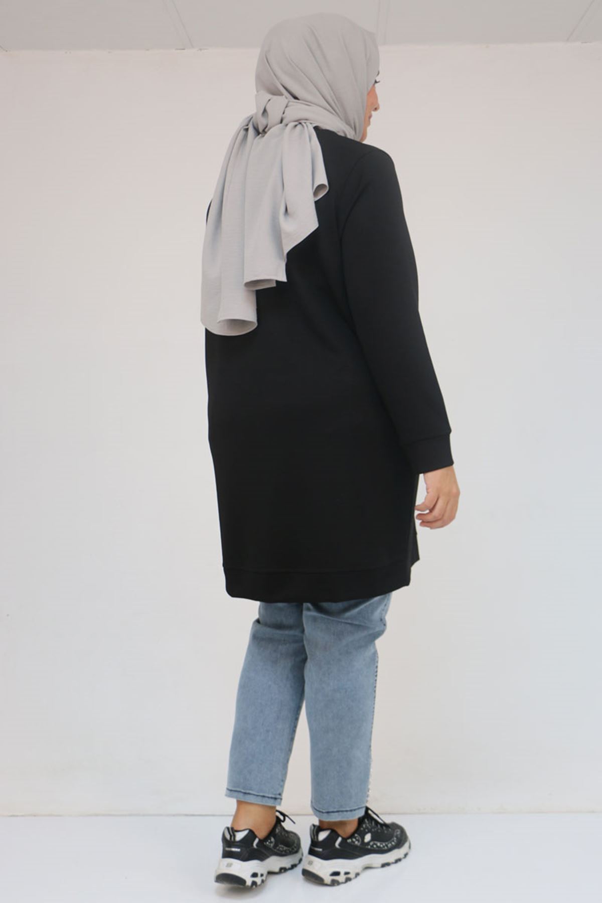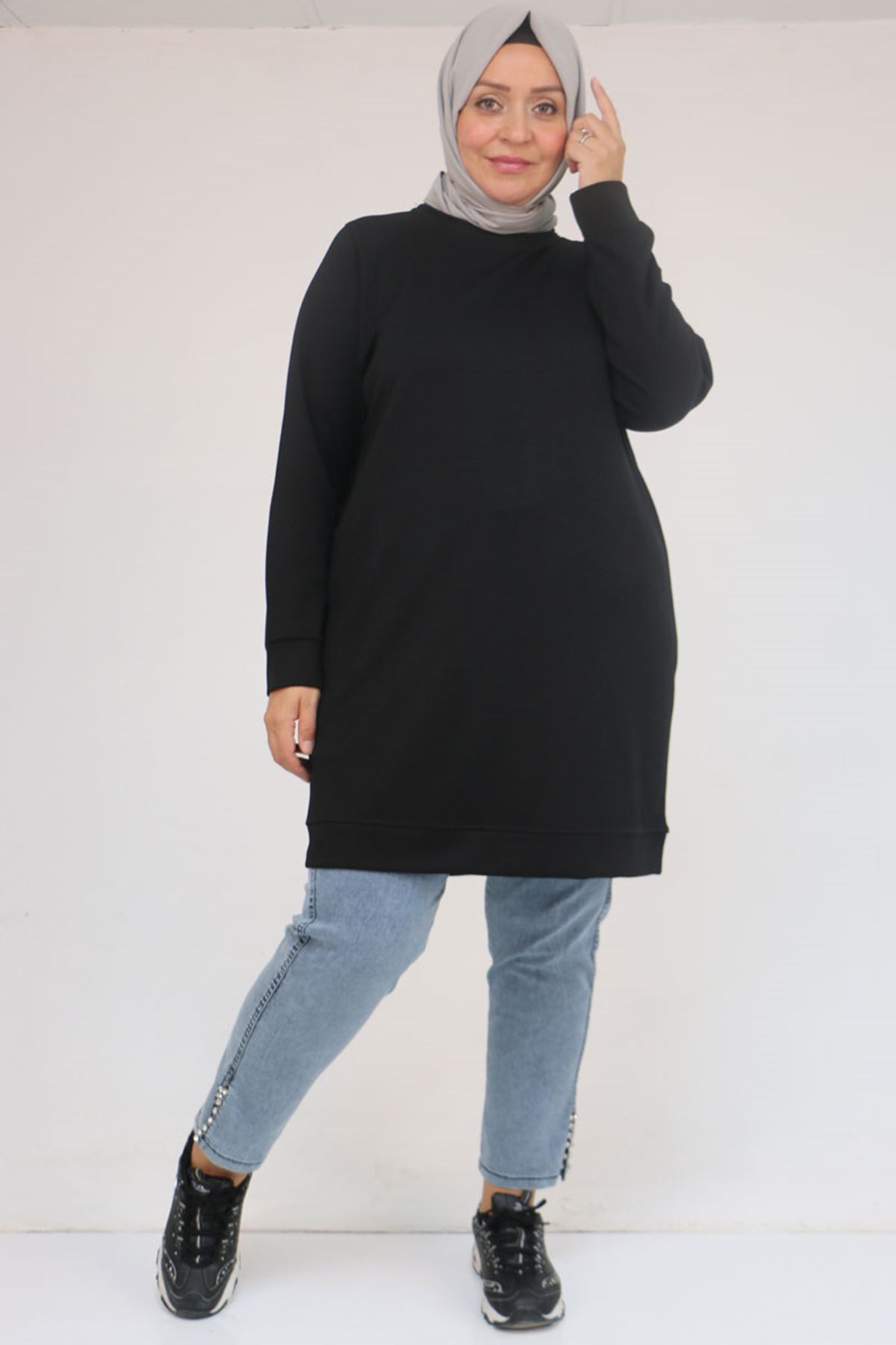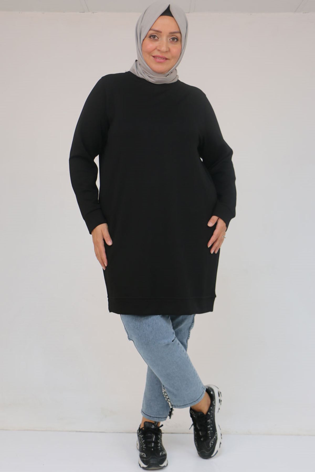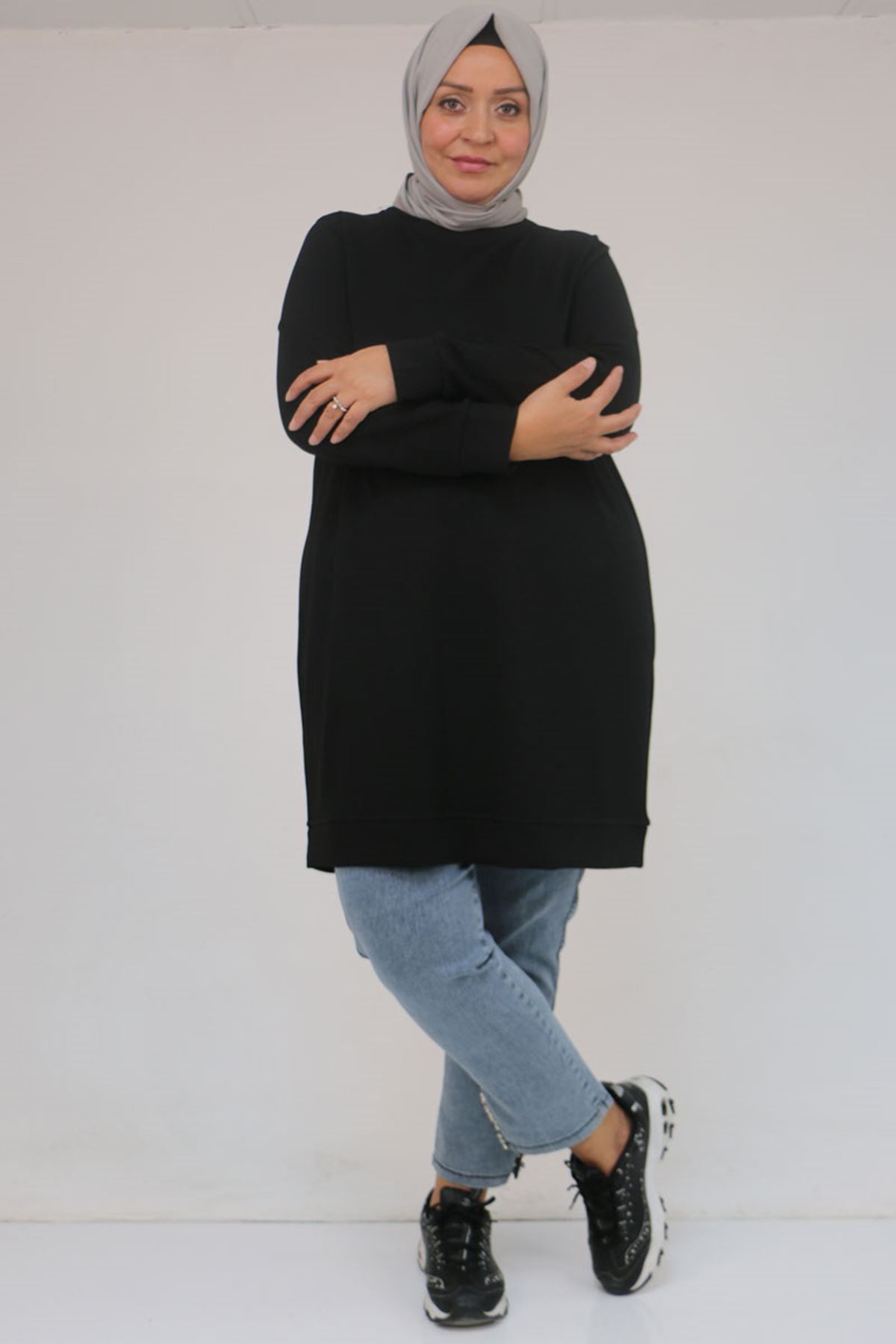 58142 Büyük Beden Kolları Manşetli Modal Tunik - Siyah