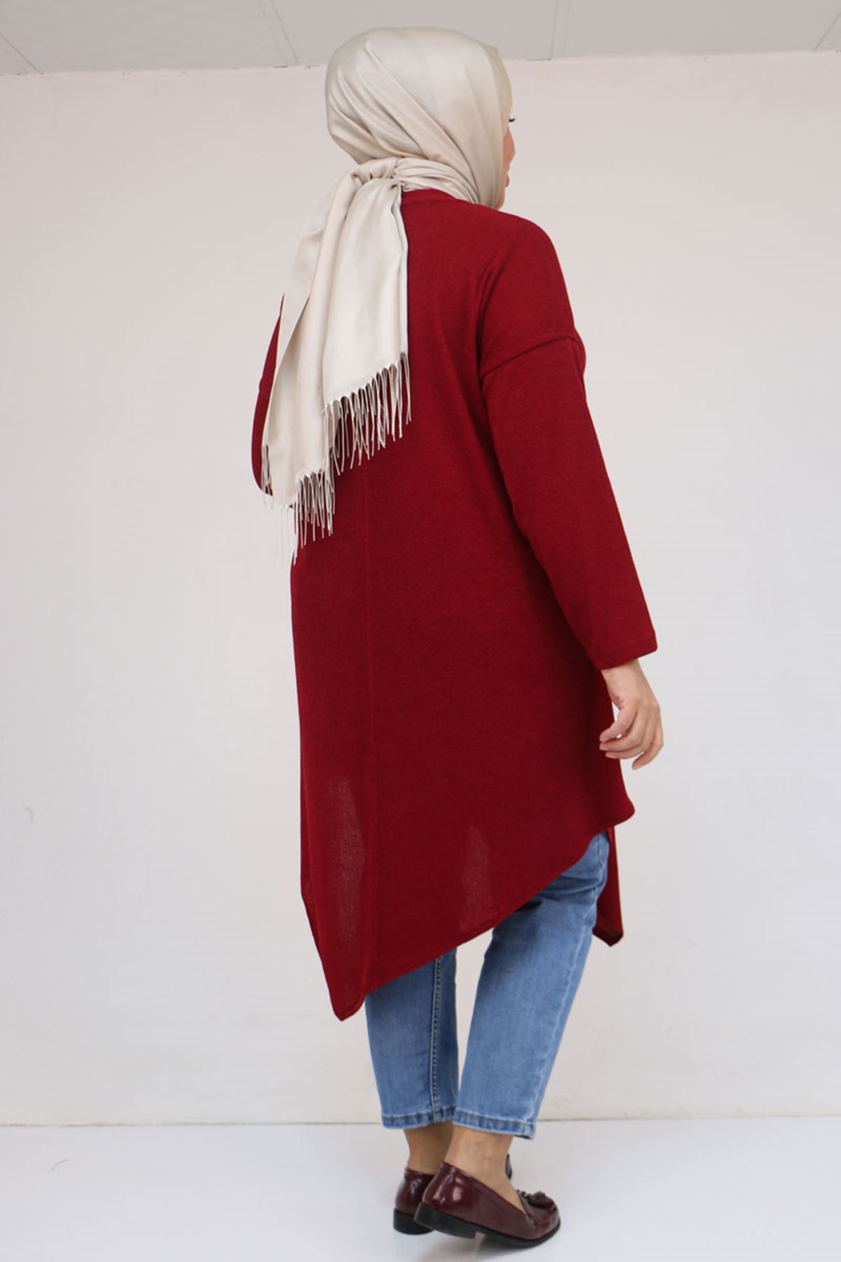 58144 Büyük Beden Hakim Yakalı Mir Tunik - Bordo