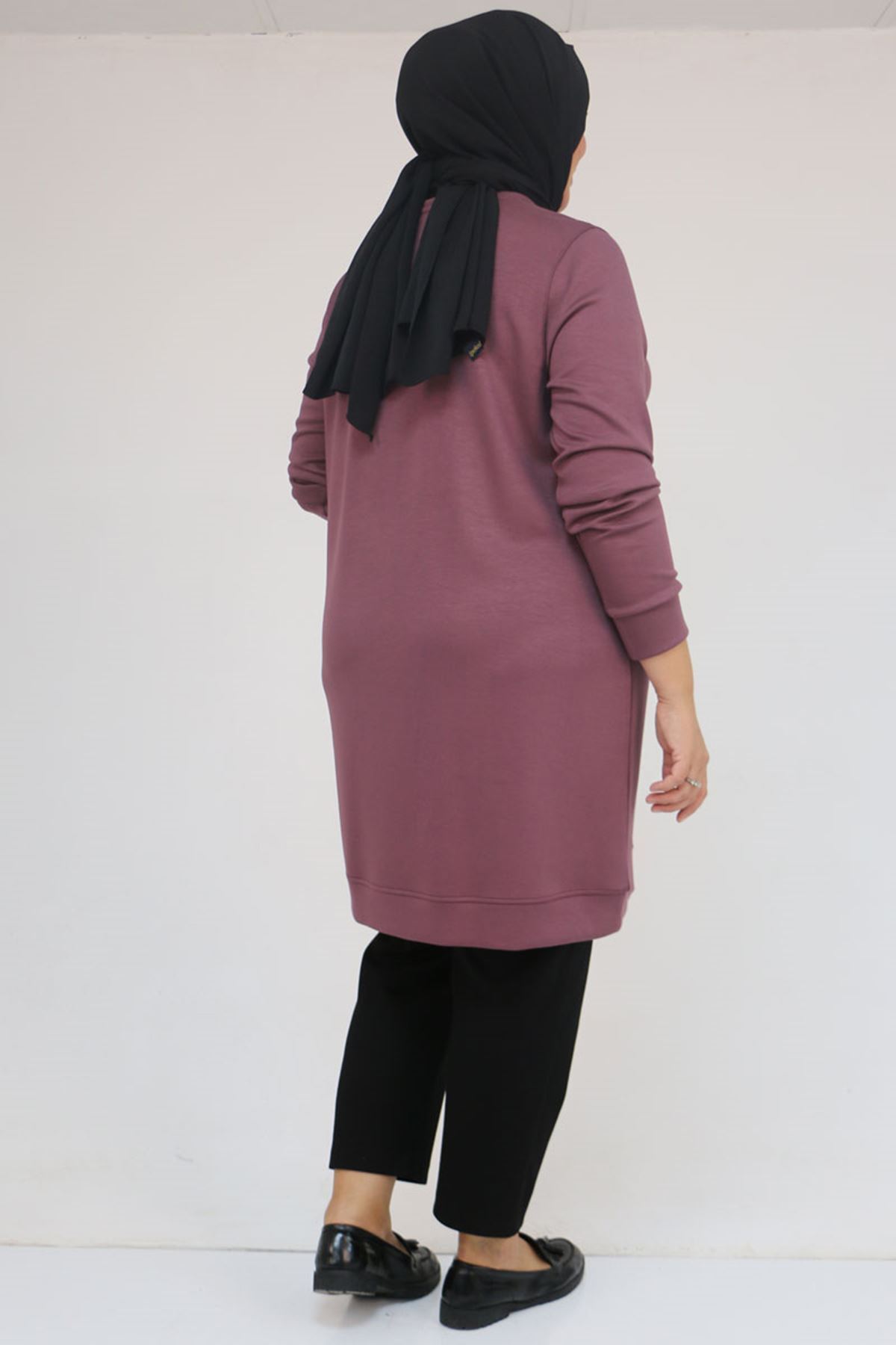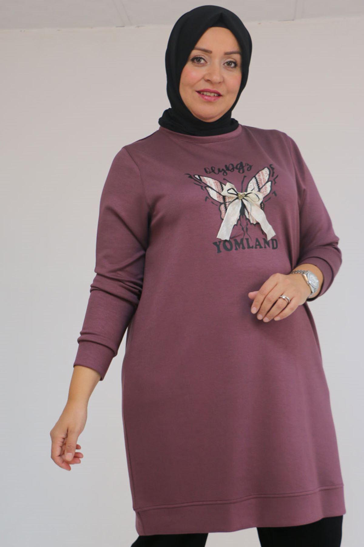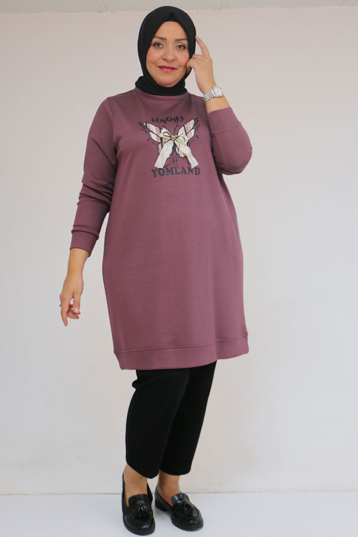 58145 Büyük Beden Kelebek Baskılı Modal Tunik - Gül Kurusu