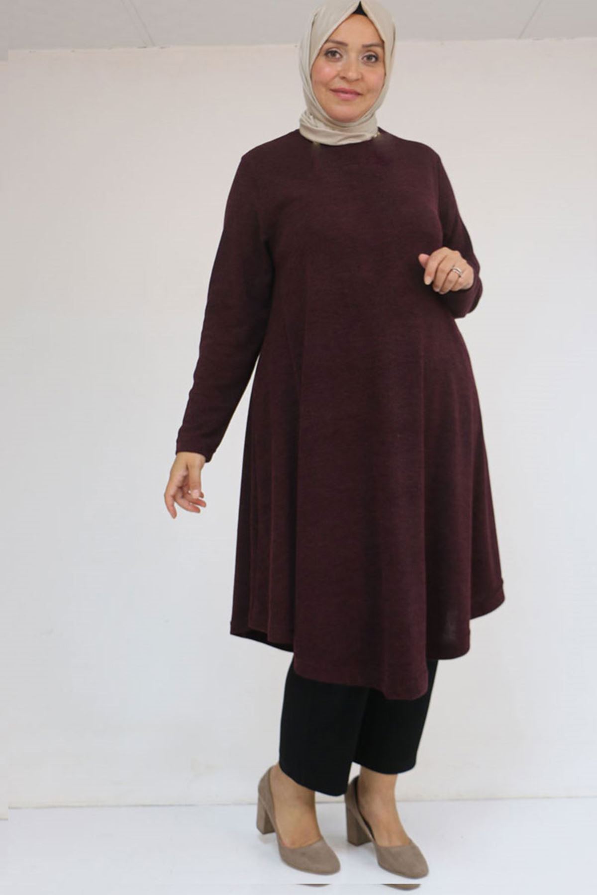 58147 Büyük Beden Mevlana Kesim Mir Tunik - Mürdüm