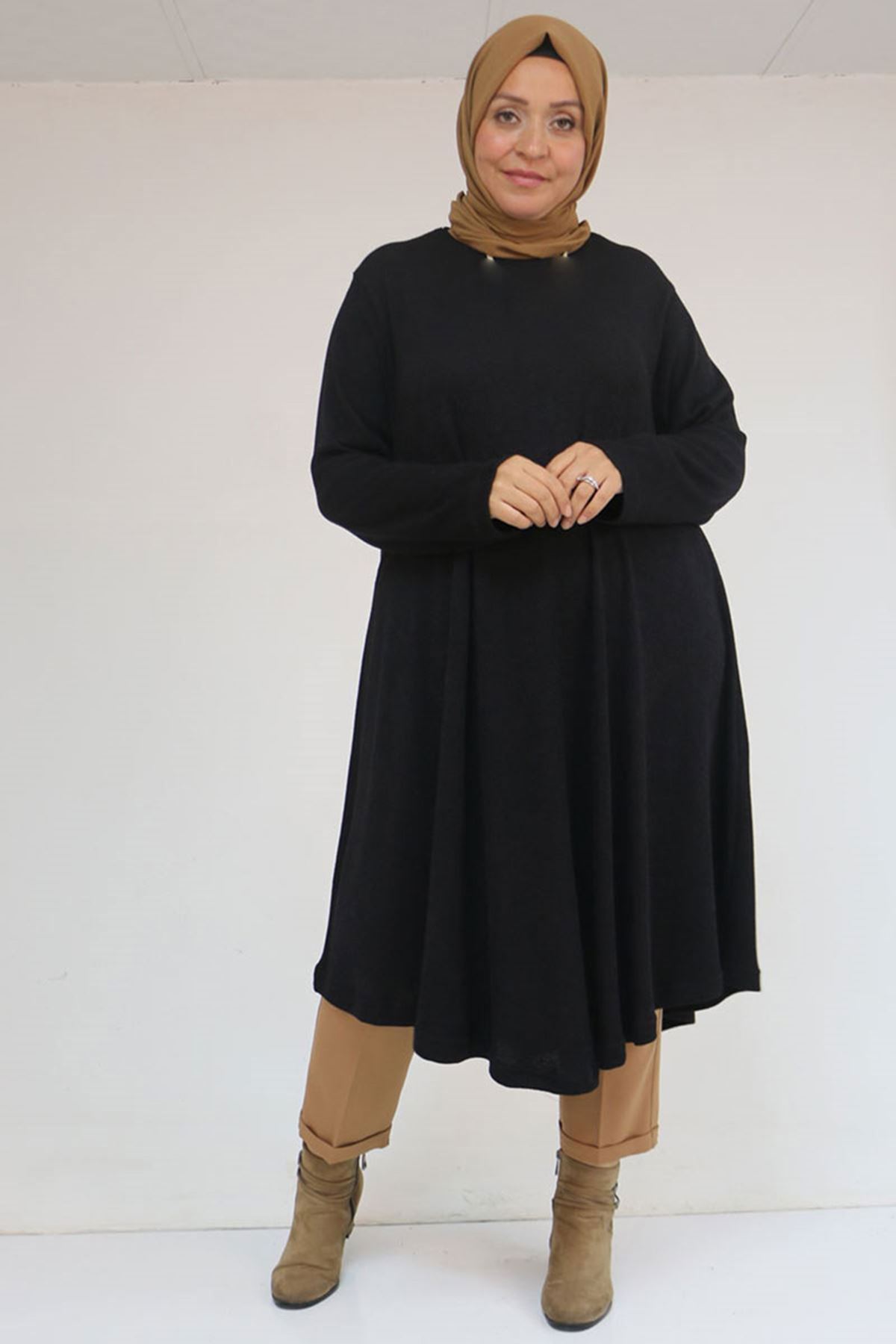58147 Büyük Beden Mevlana Kesim Mir Tunik - Siyah