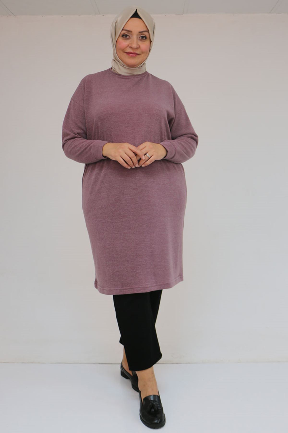 58148 Büyük Beden Düşük Kollu Mir Tunik - Gül Kurusu