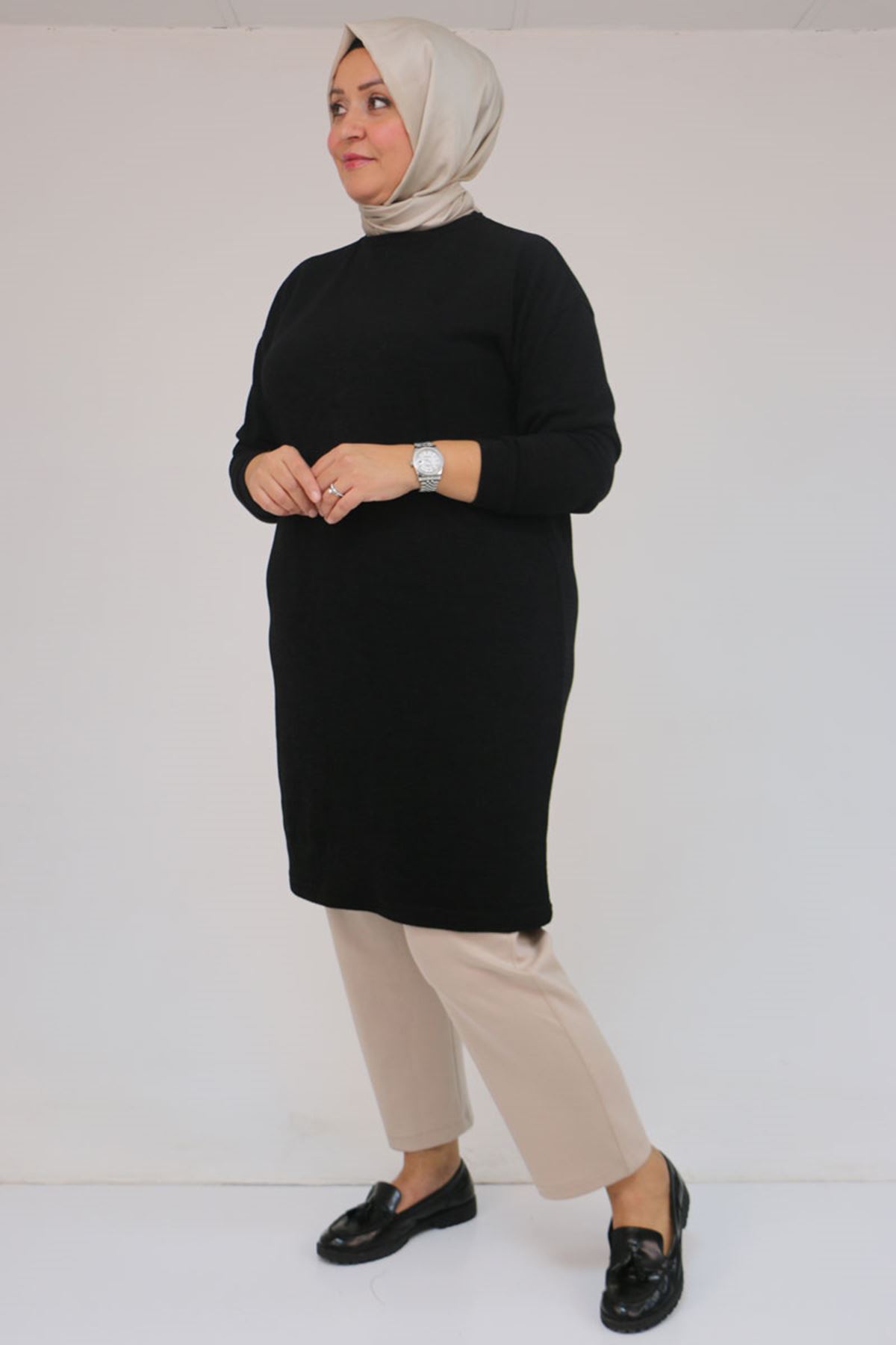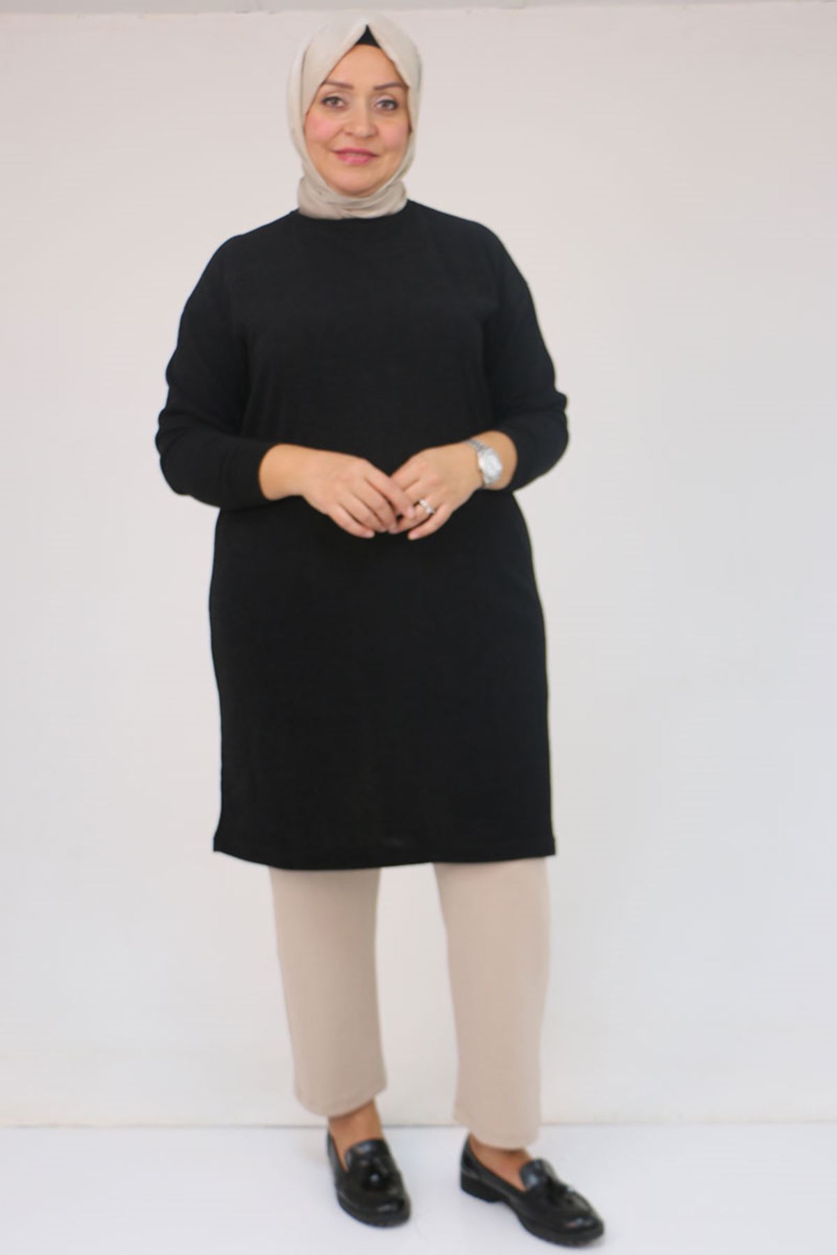 58148-E Büyük Beden Düşük Kollu Mir Tunik - Siyah