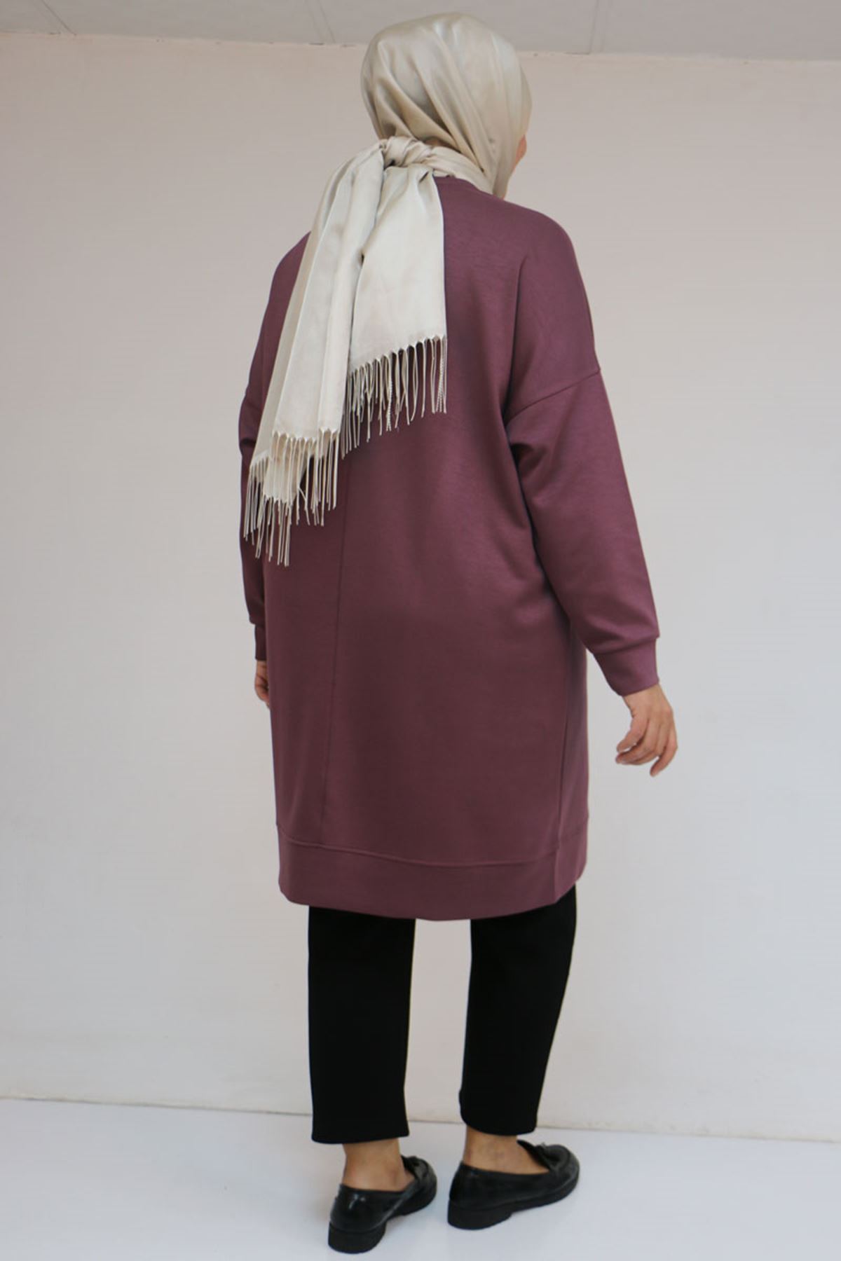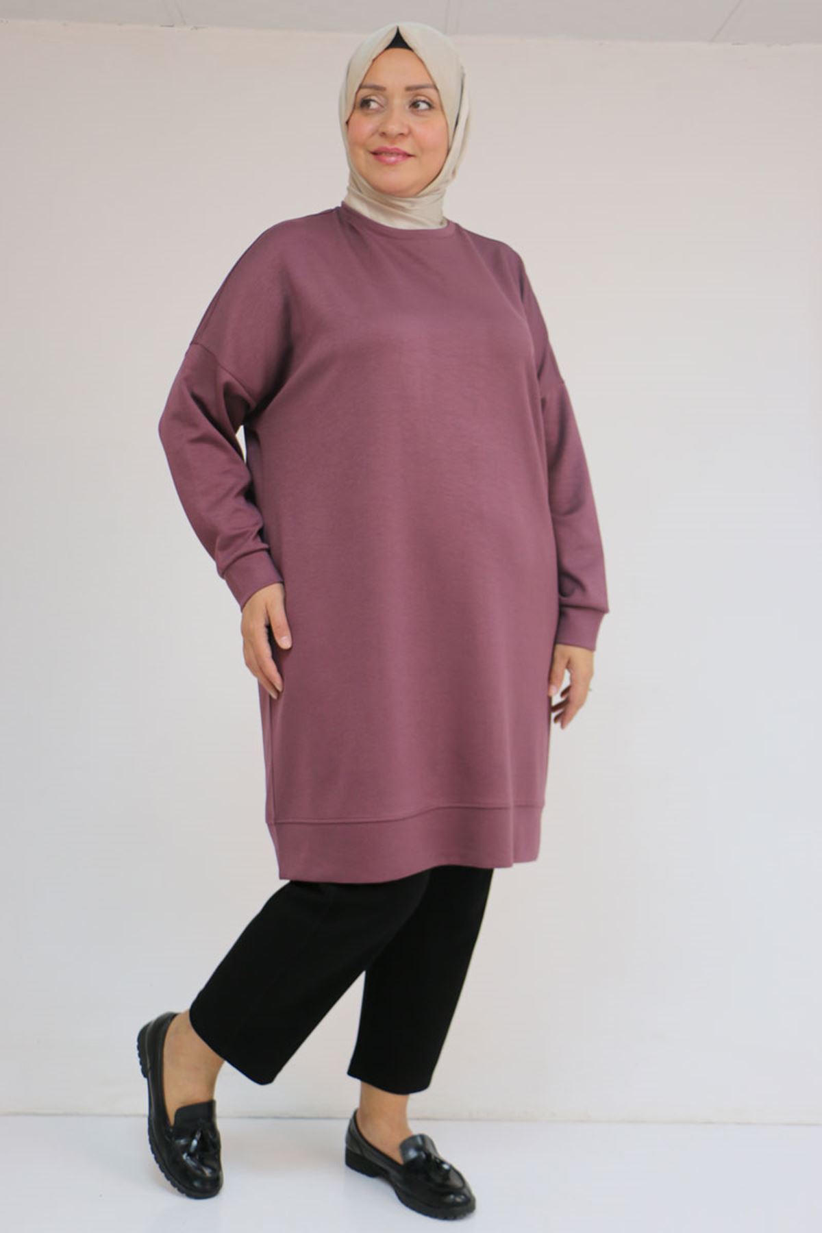 58151 Büyük Beden Kol Ve Etek Ucu Kendinden Ribanalı Modal Tunik - Gül Kurusu