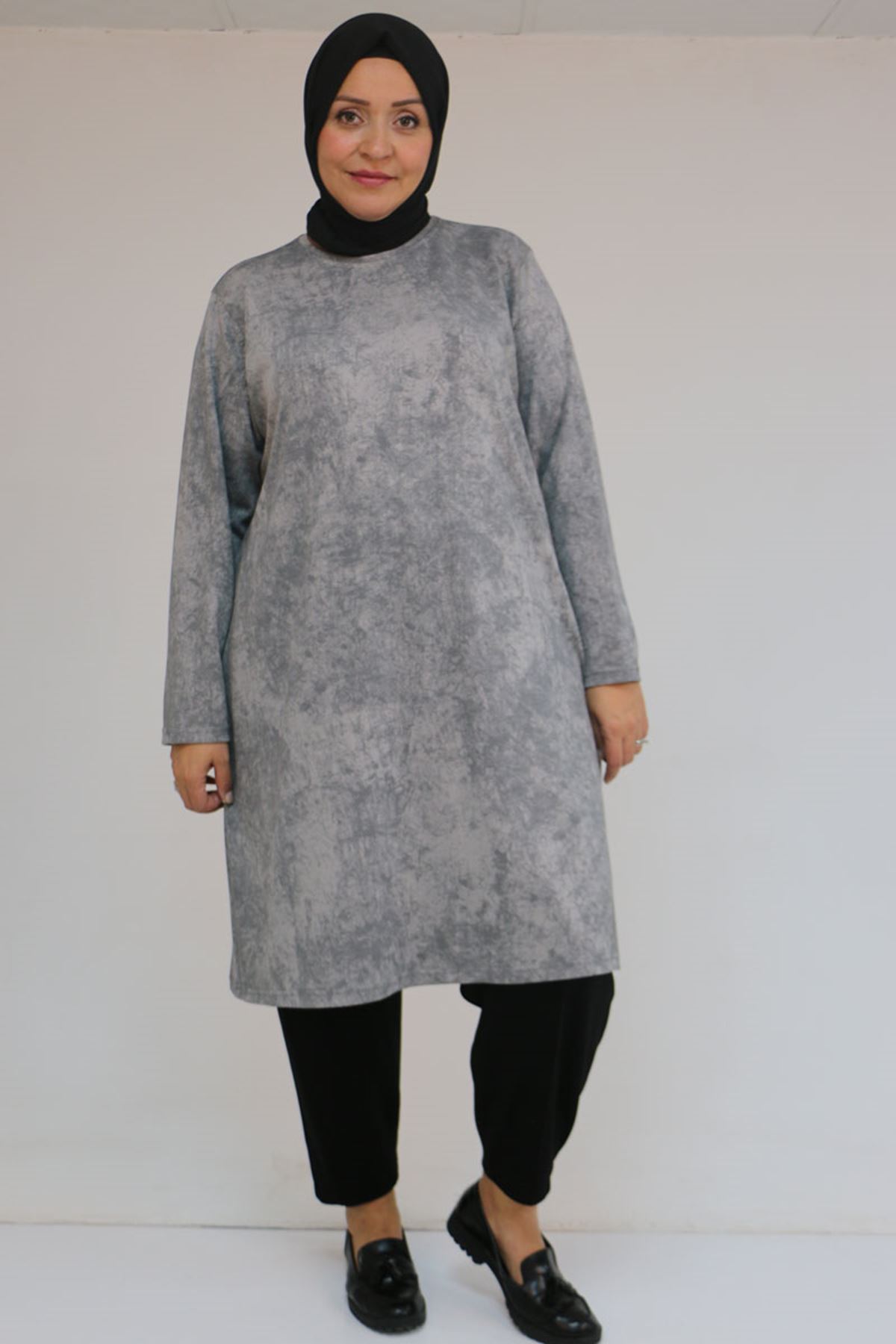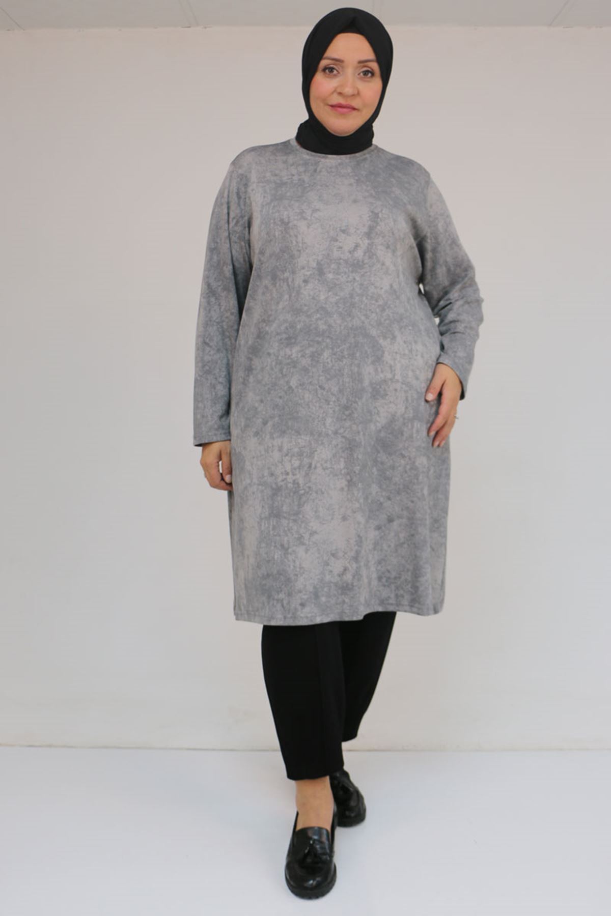 58153 Büyük Beden Basic Batik Modal Tunik - Batik Gri