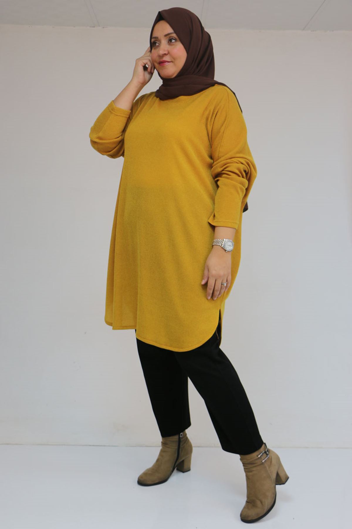58156 Büyük Beden Basic Mir Tunik - Hardal