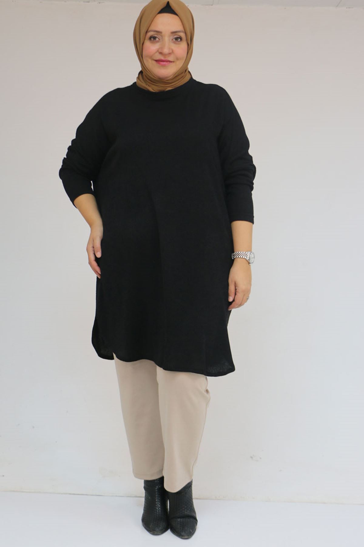 58156 Büyük Beden Basic Mir Tunik - Siyah