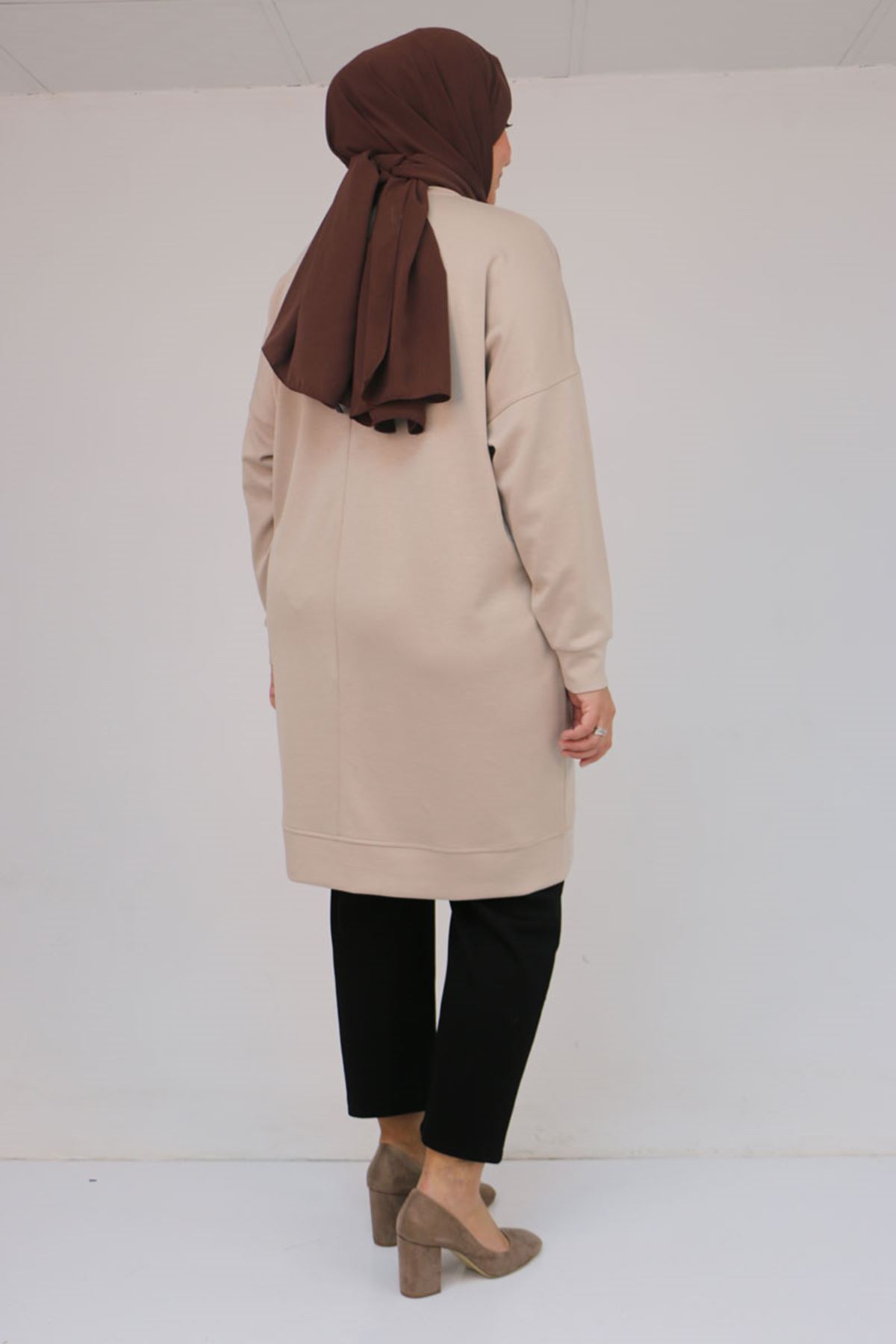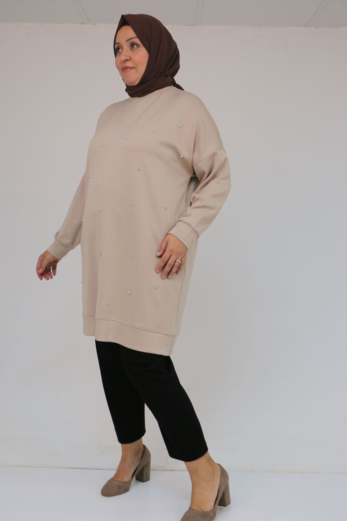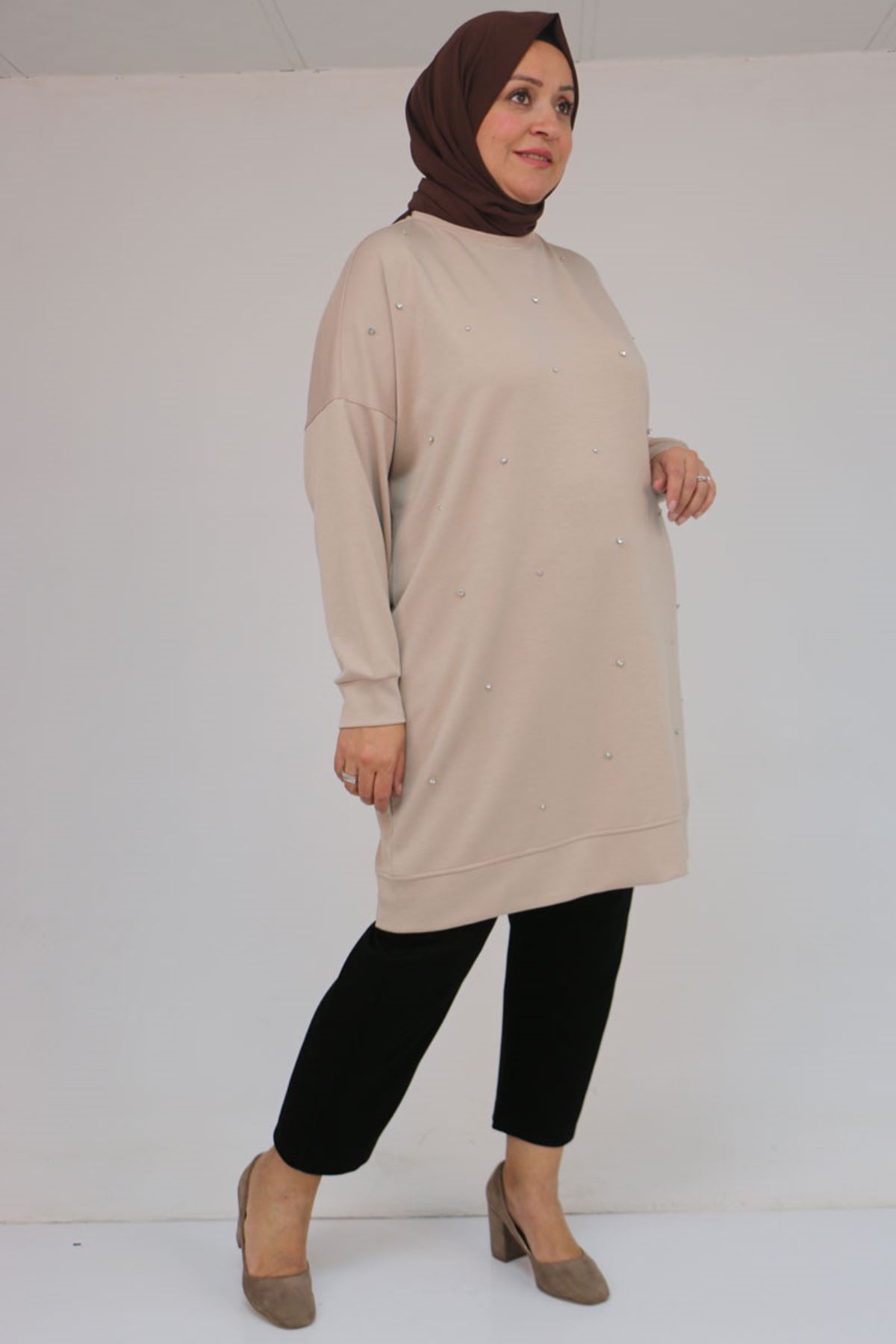 58157 Büyük Beden Beyoğlu Taş Çakmalı Modal Tunik - Vizon
