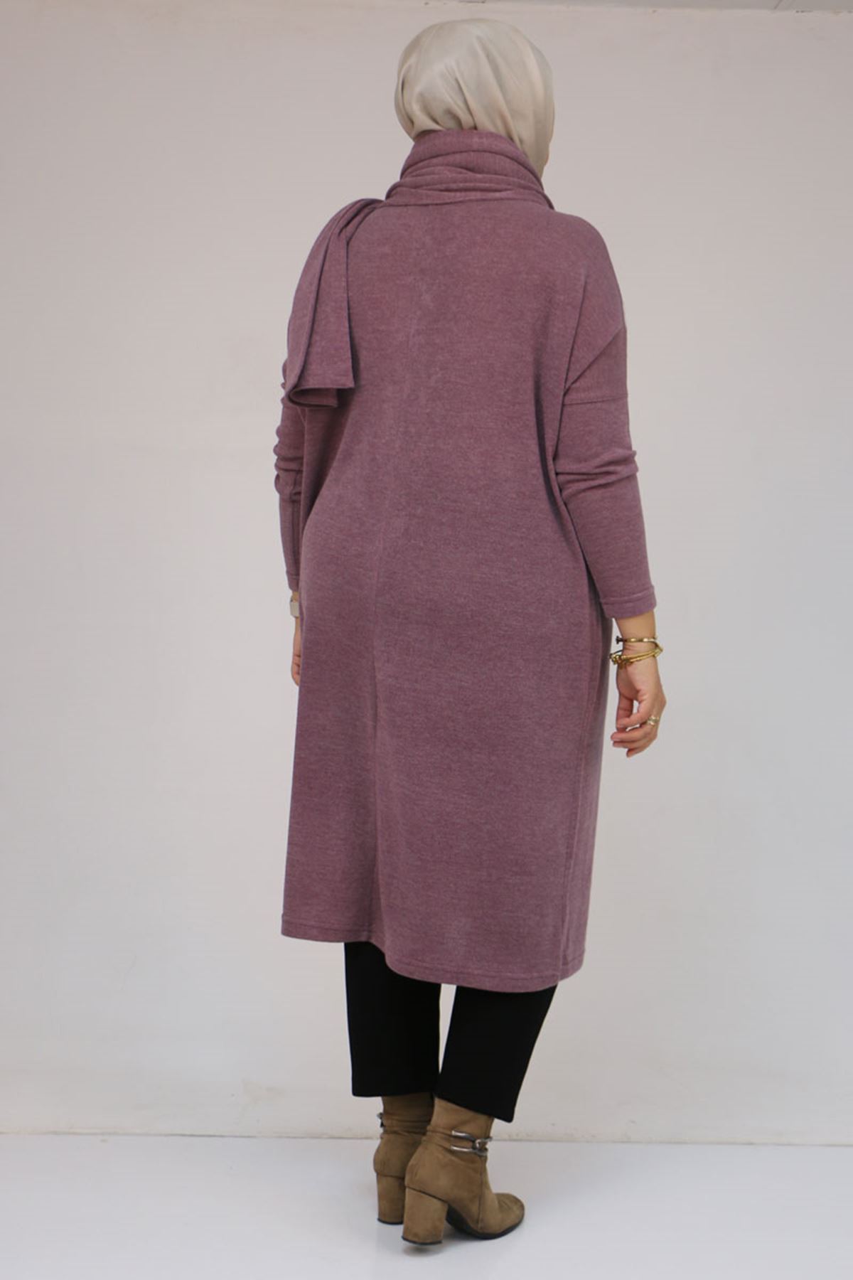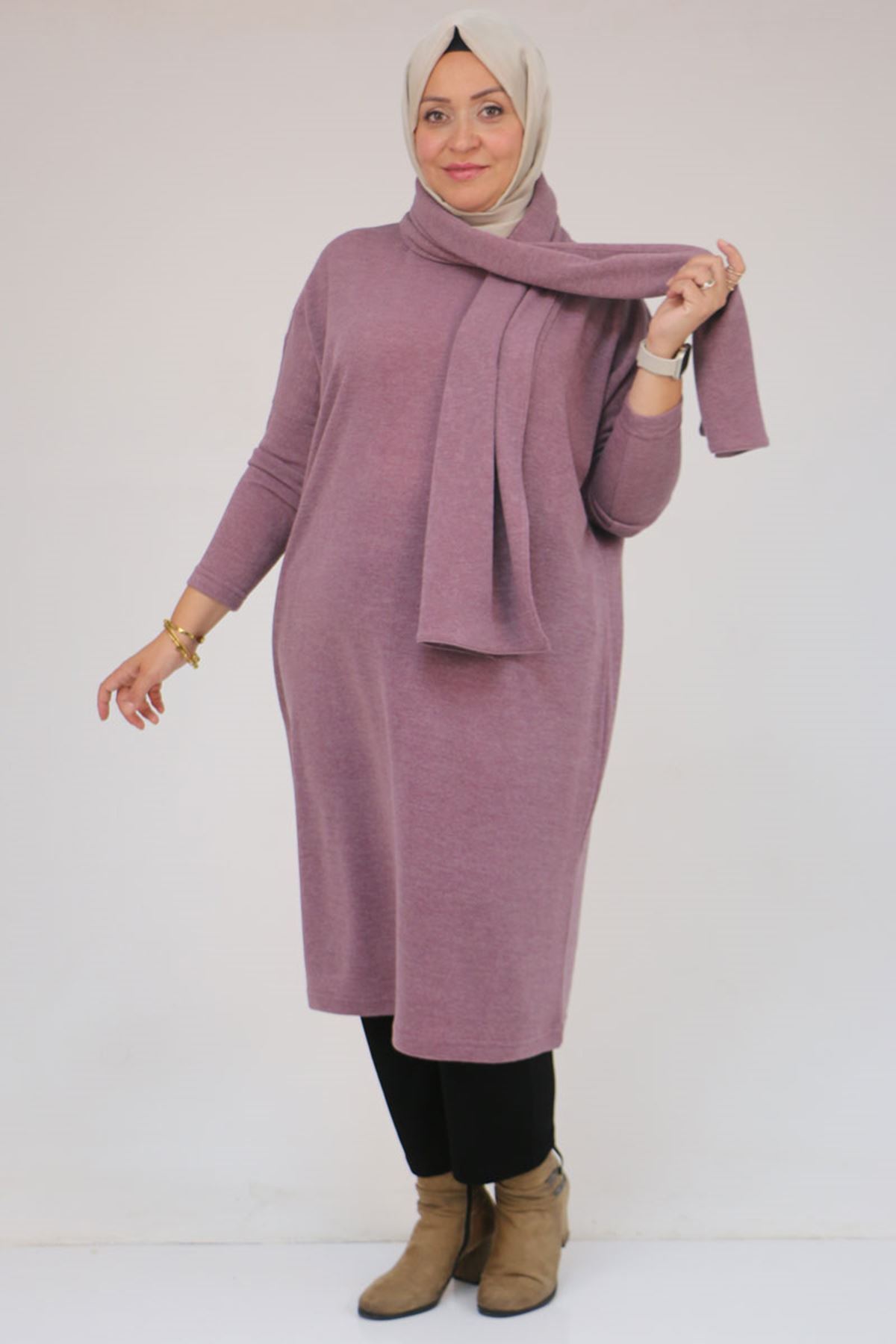 58158 Büyük Beden Atkı Modelli Mir Tunik - Gül Kurusu