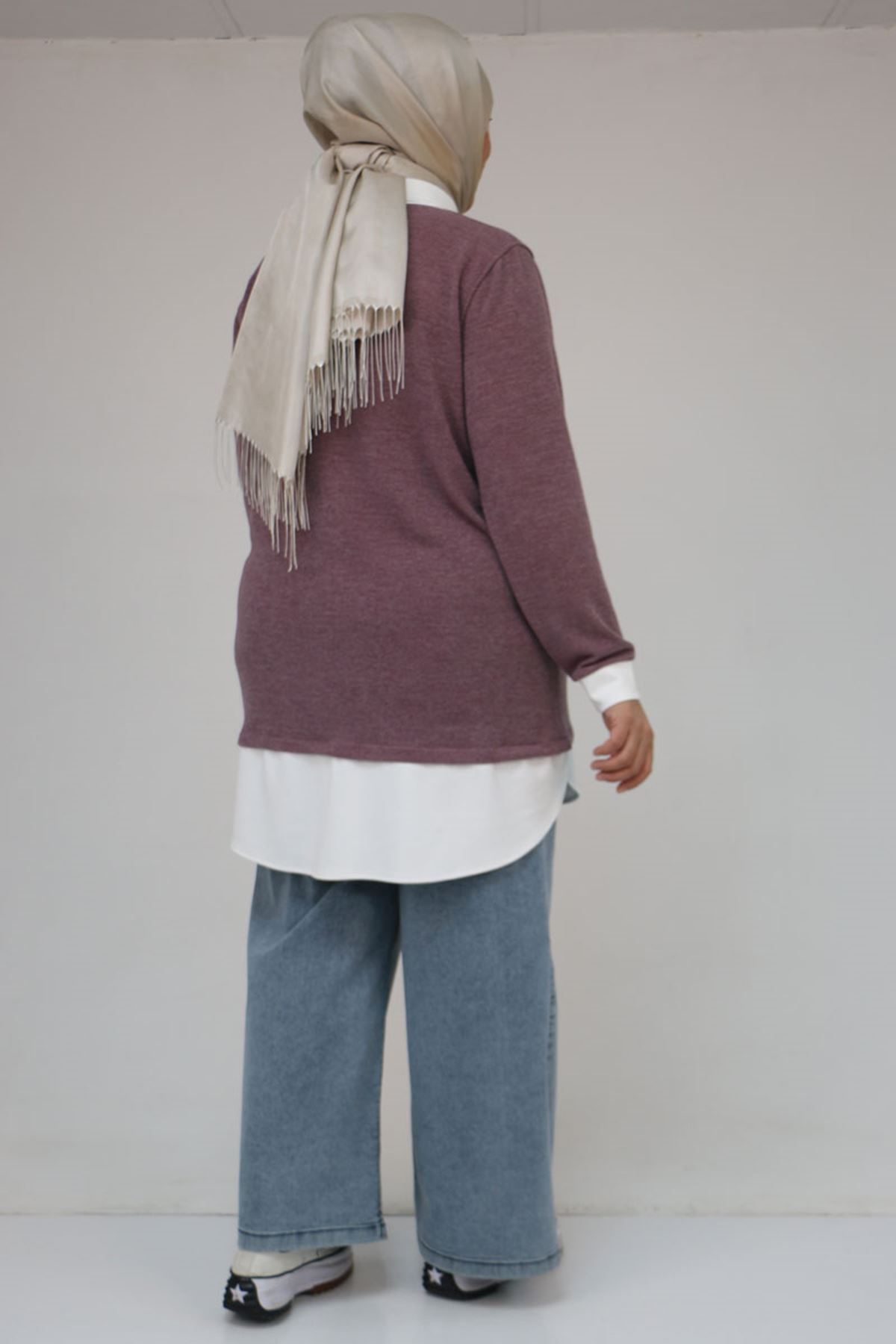58159 Büyük Beden Gömlek Yaka Görünümlü Garnili Mir Tunik - Gül Kurusu