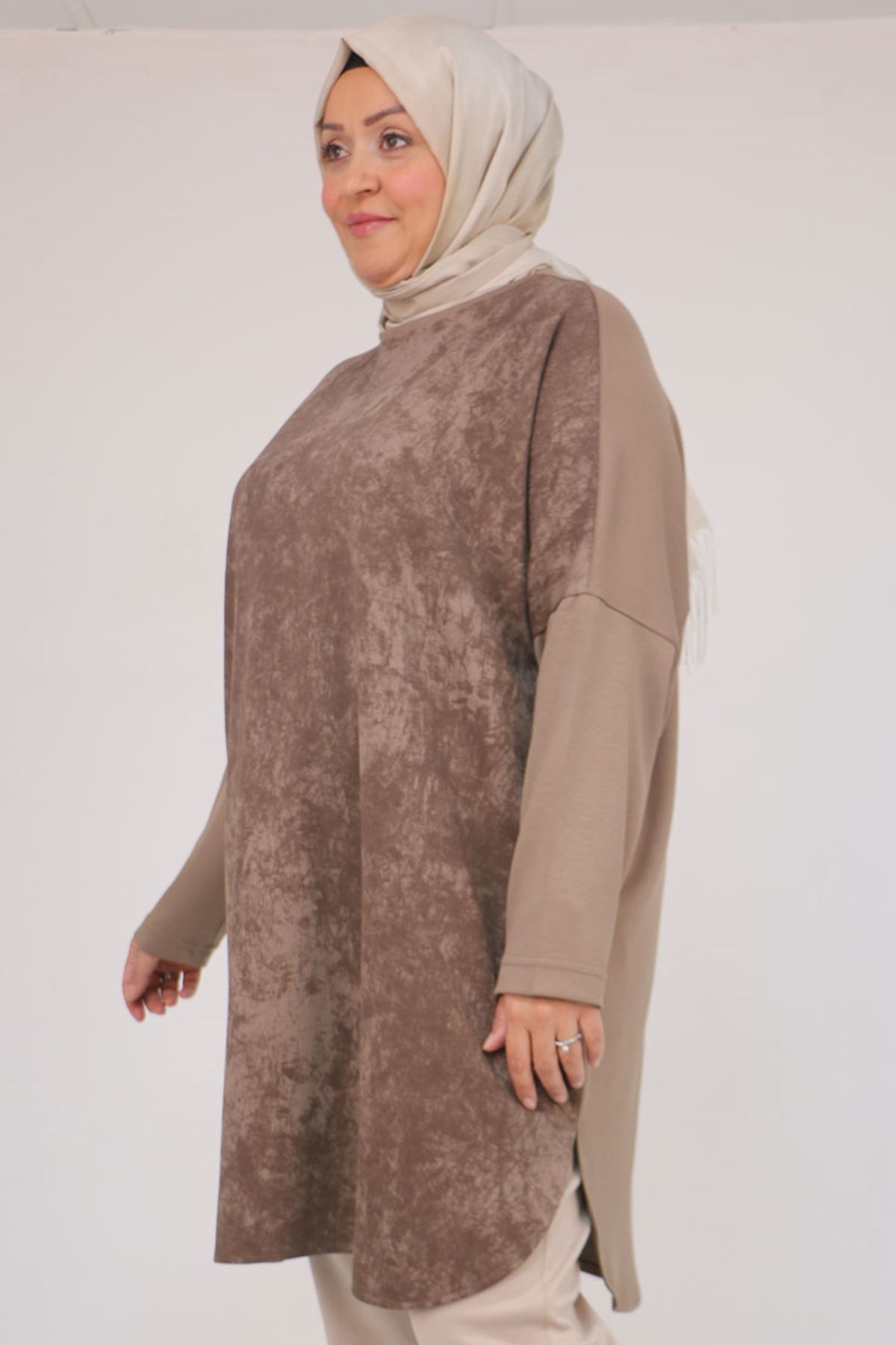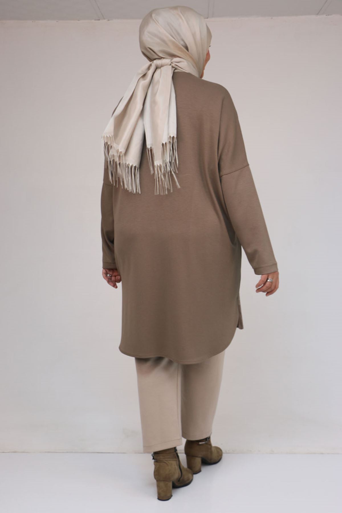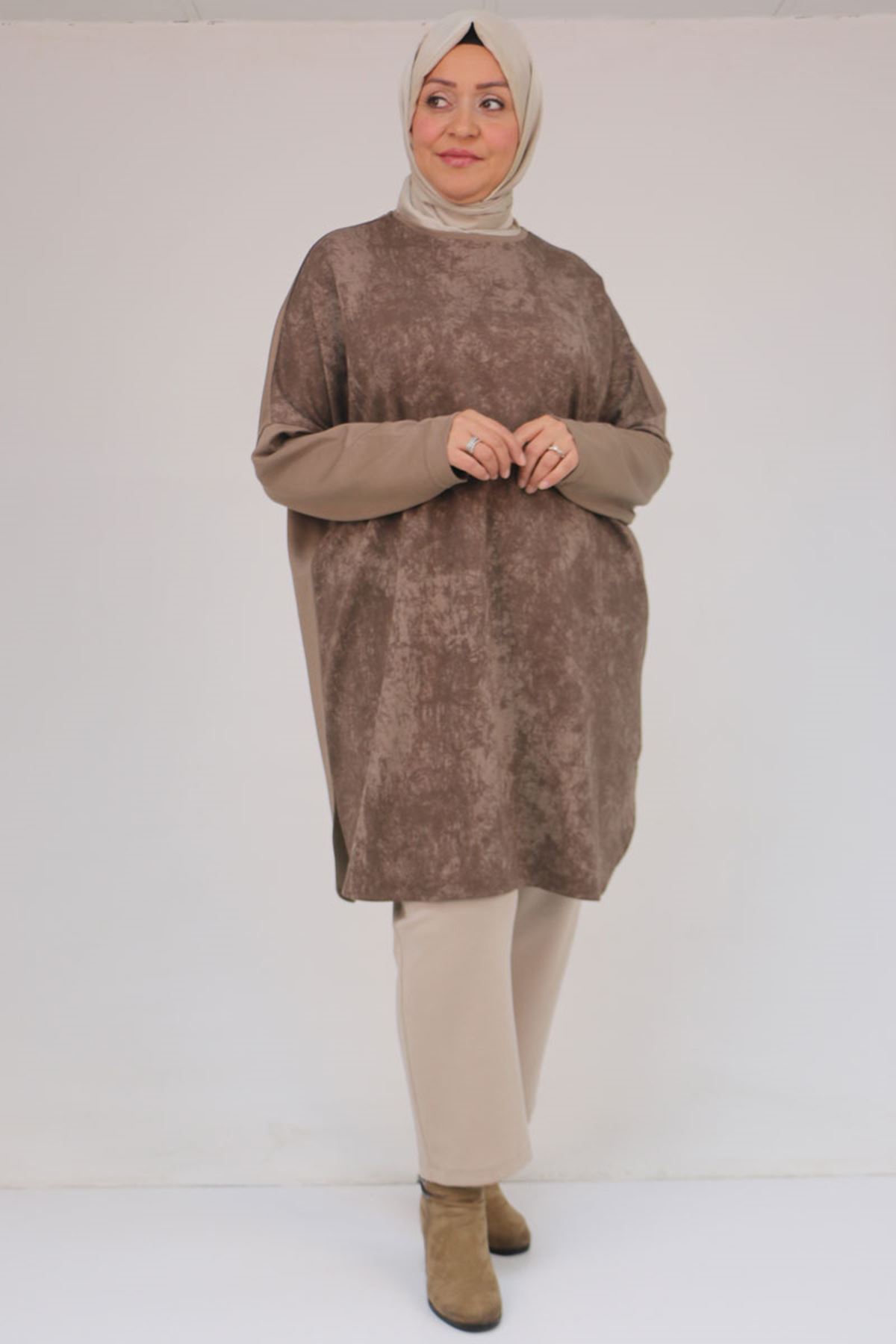 58164 Büyük Beden Basic Modal Tunik - Koyu Vizon