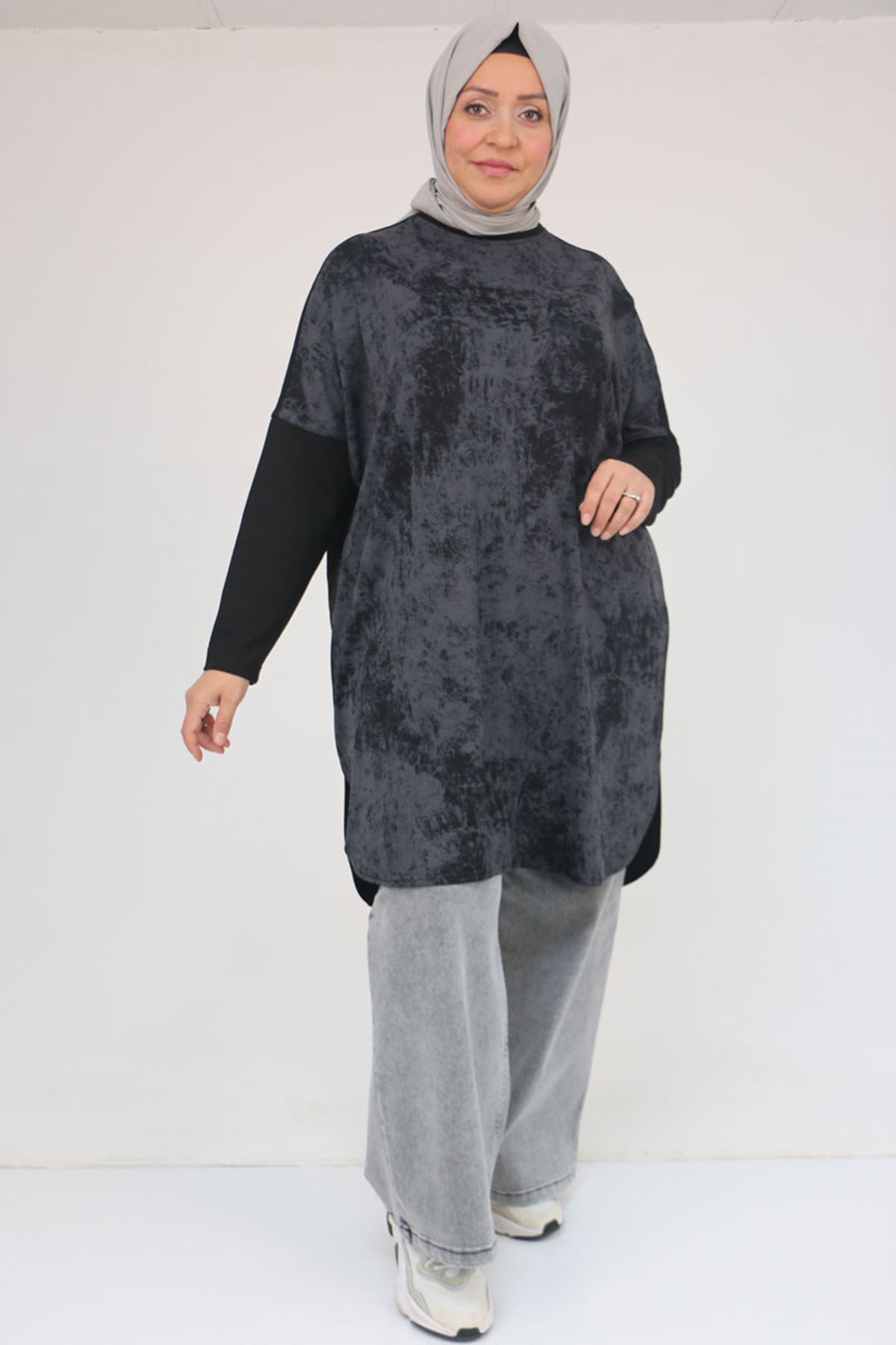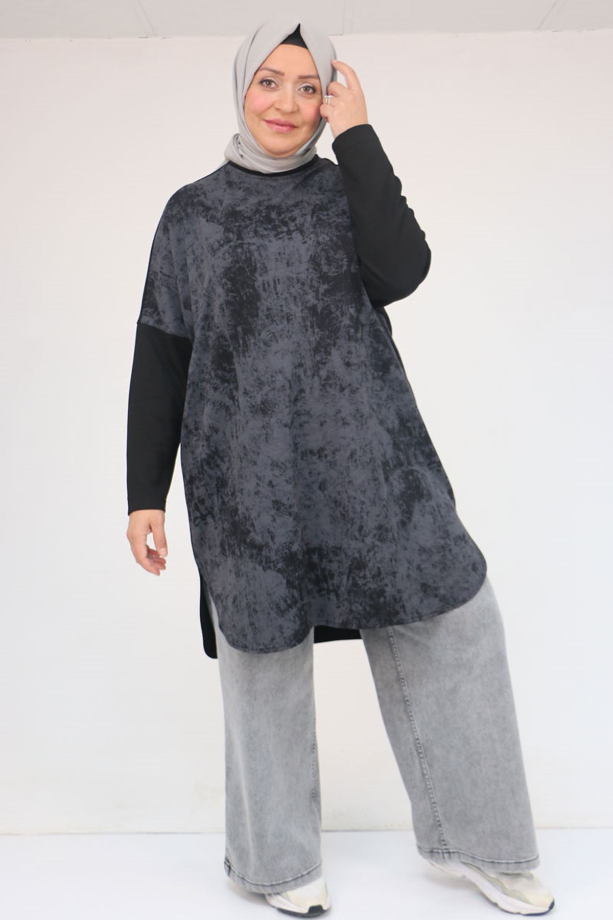 58164 Büyük Beden Basic Modal Tunik - Siyah