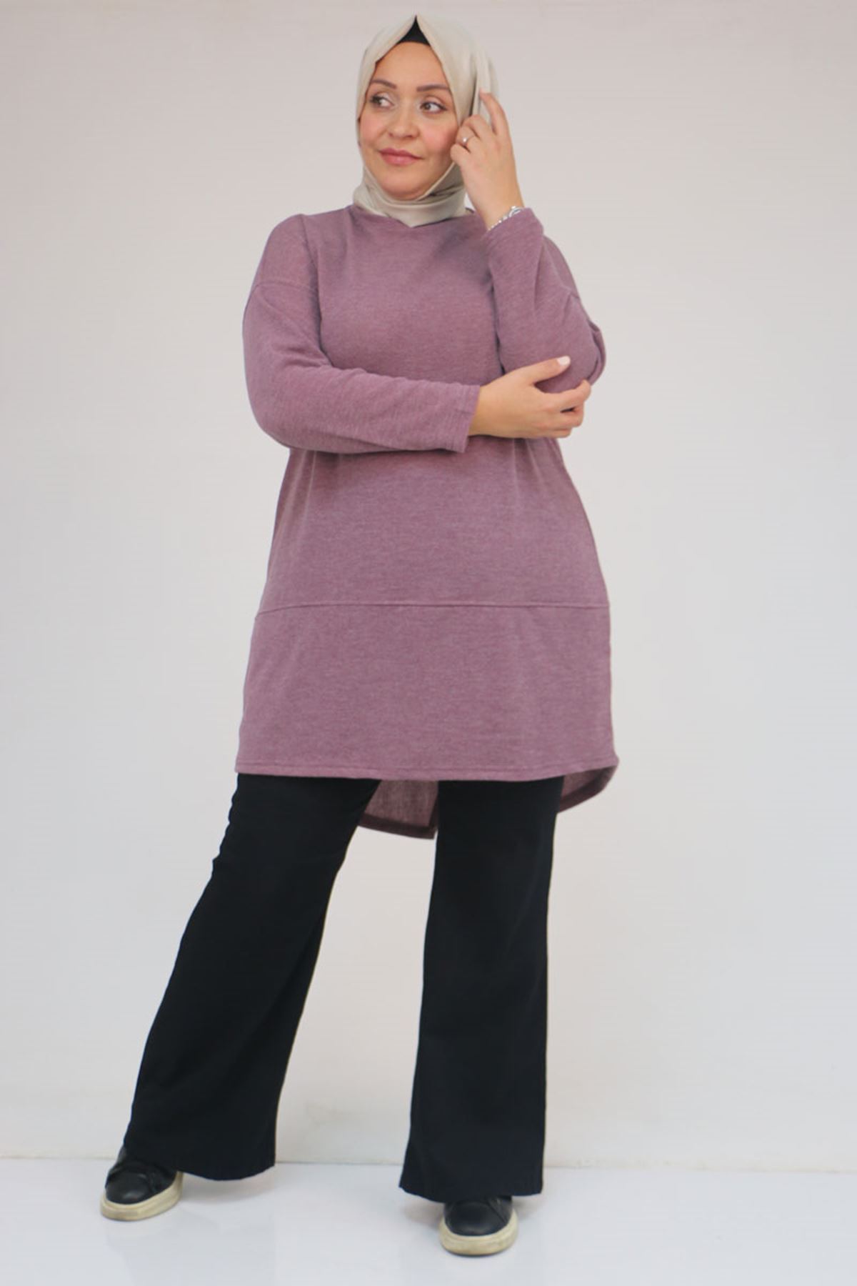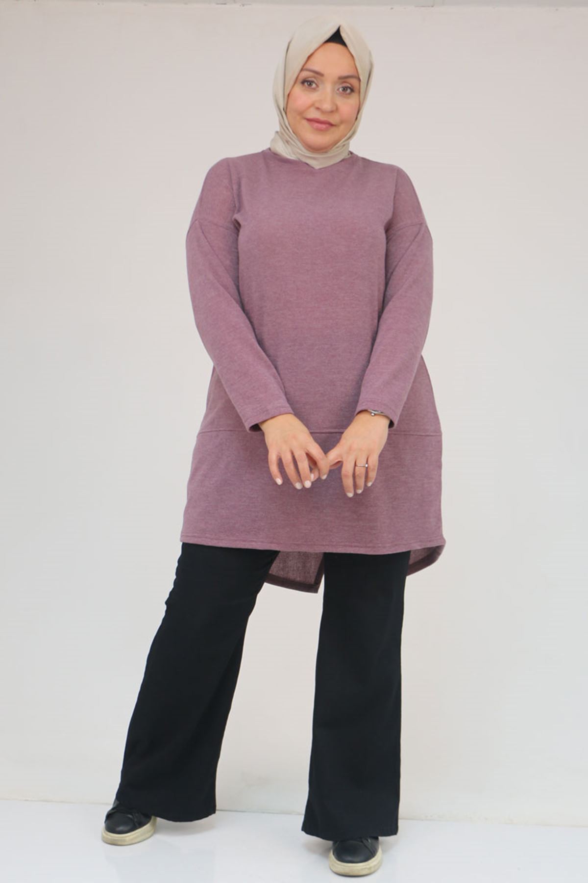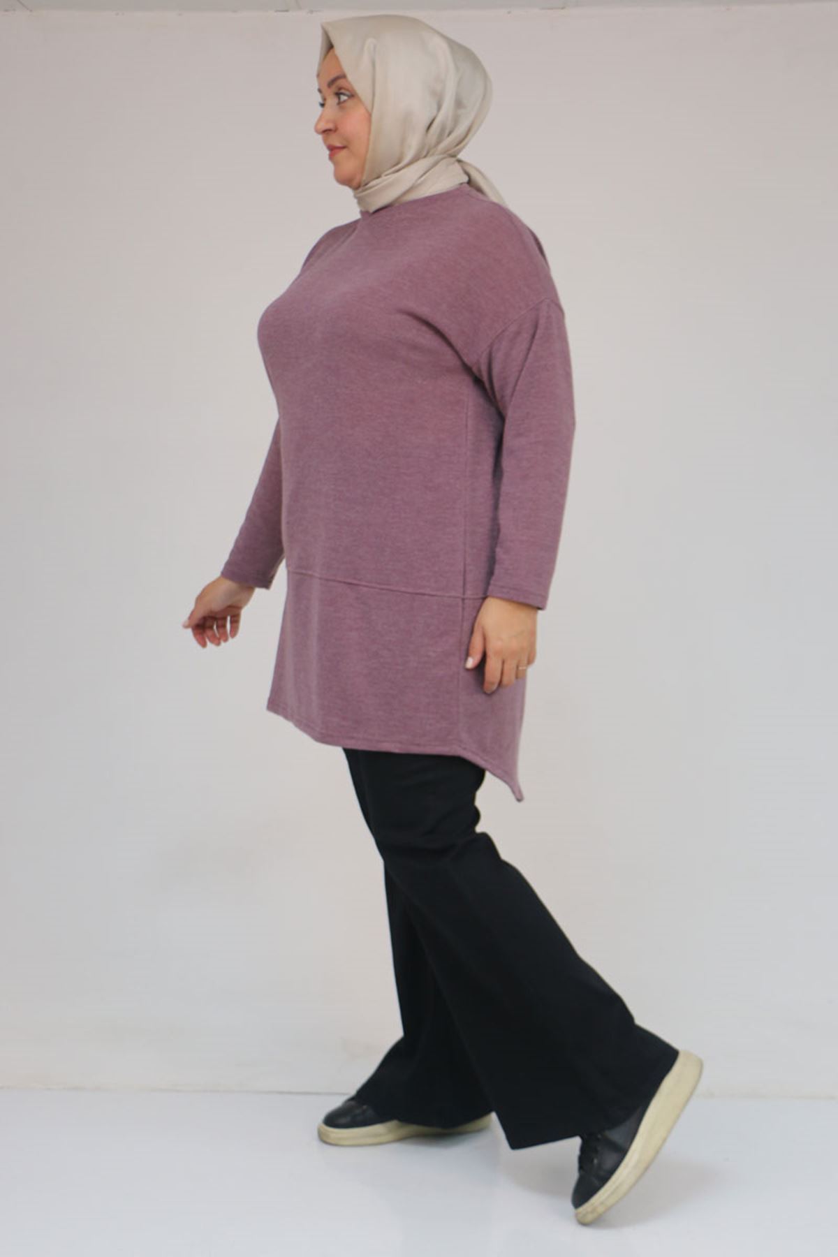 58166 Büyük Beden Makas Mir Tunik - Gül Kurusu