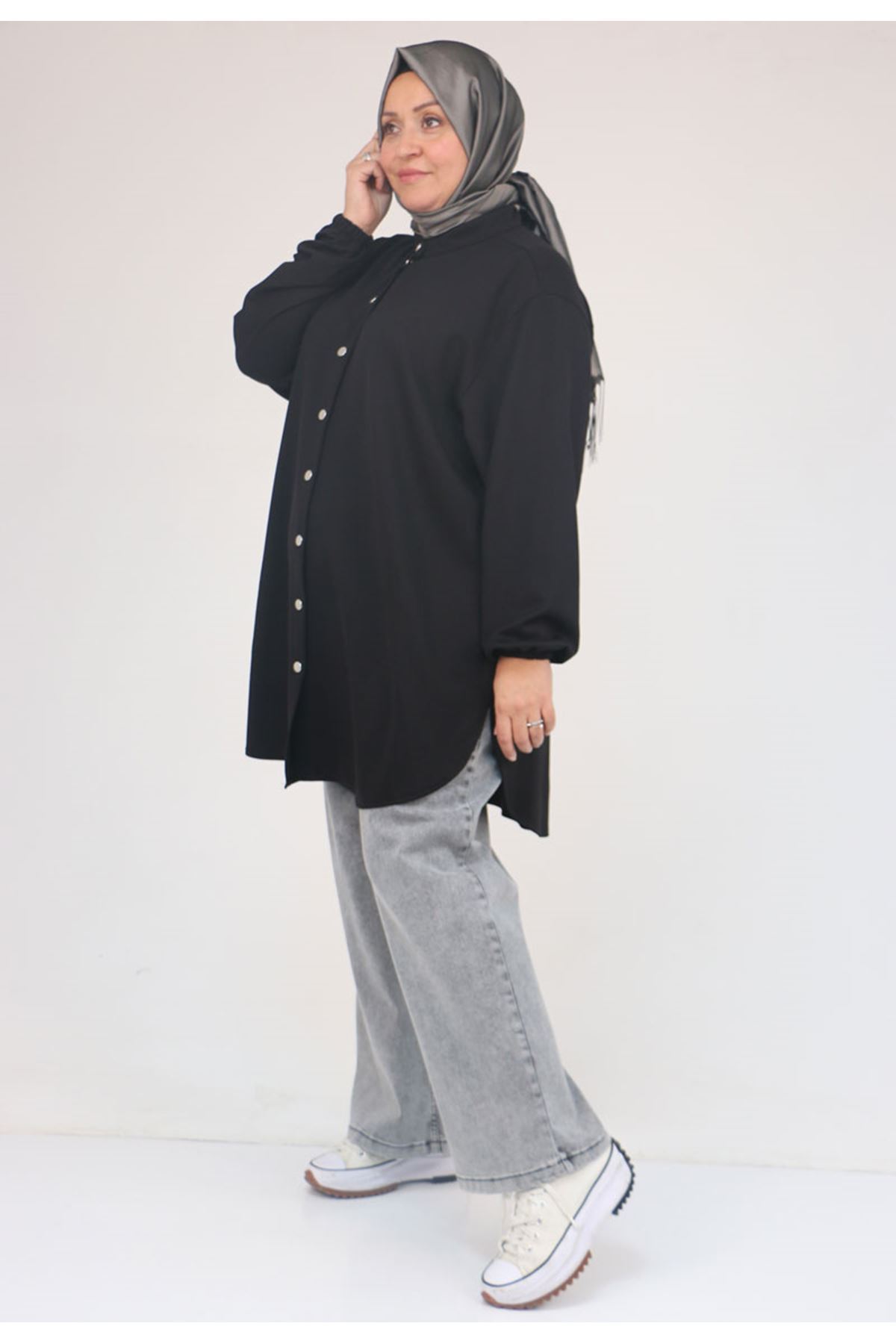 58169 Büyük Beden Hakim Yaka Çıtçıtlı Modal Tunik - Siyah