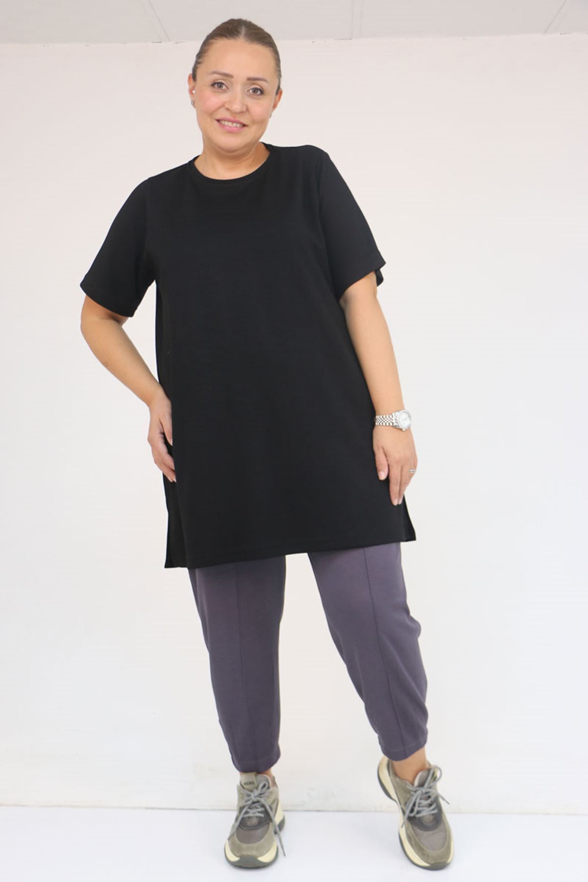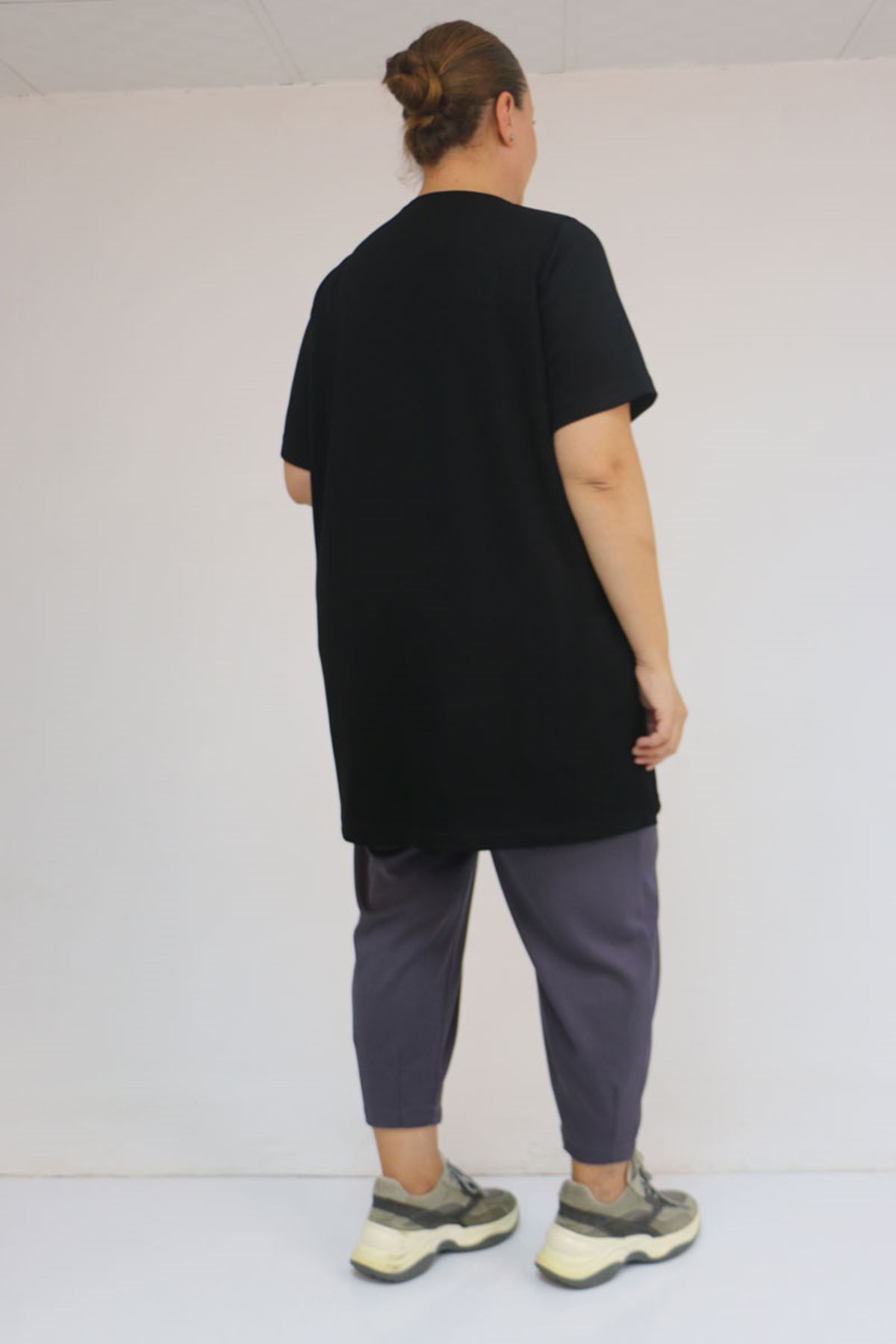 58508 Büyük Beden Yakası Biyeli Modal Tişört - Siyah