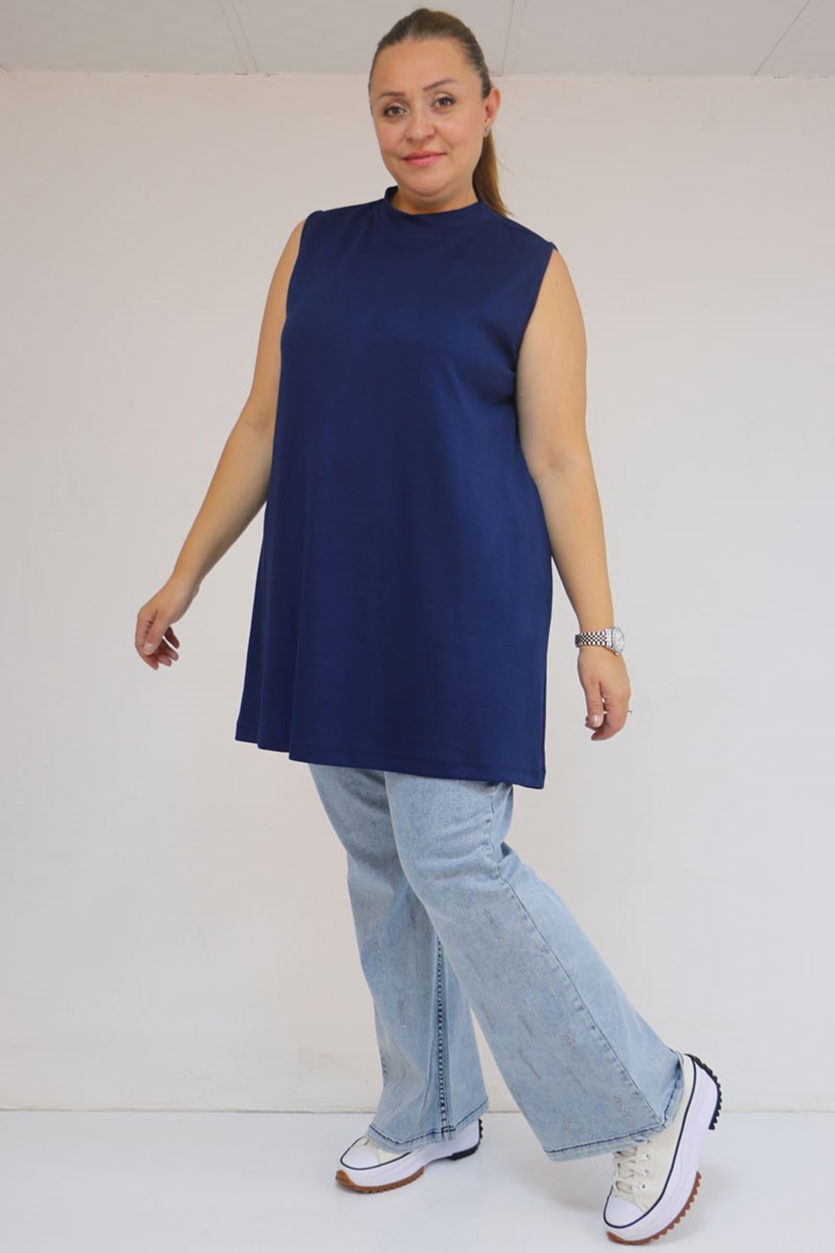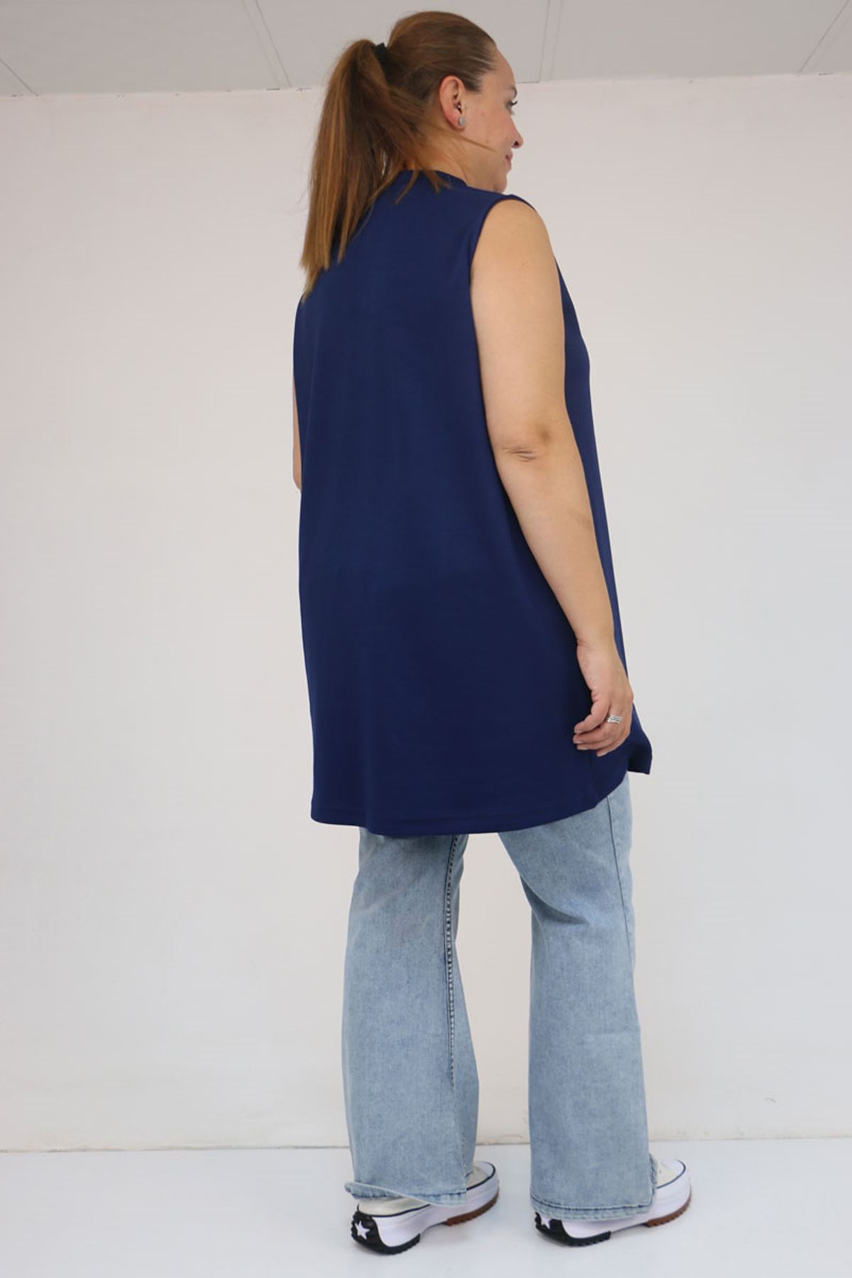 58509 Büyük Beden Uzun Modal İçlik - İndigo