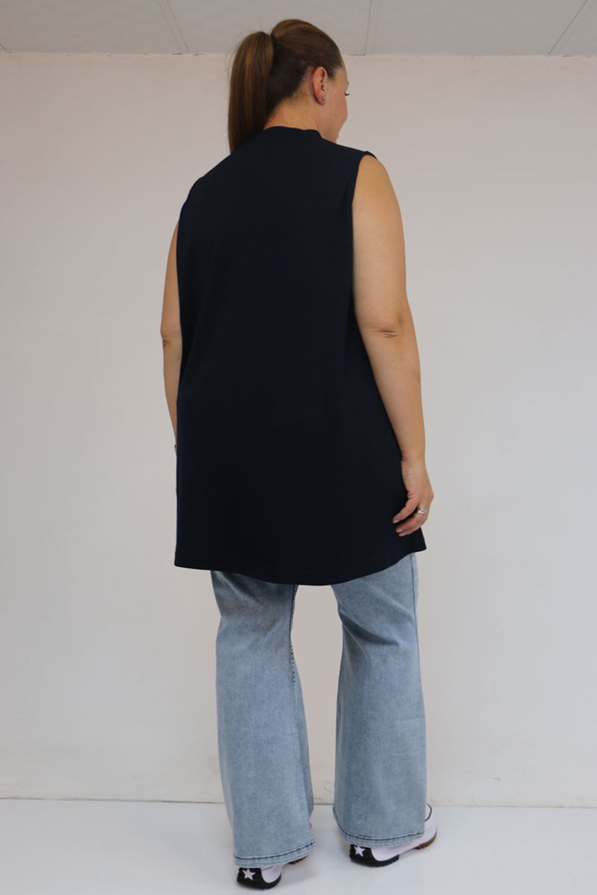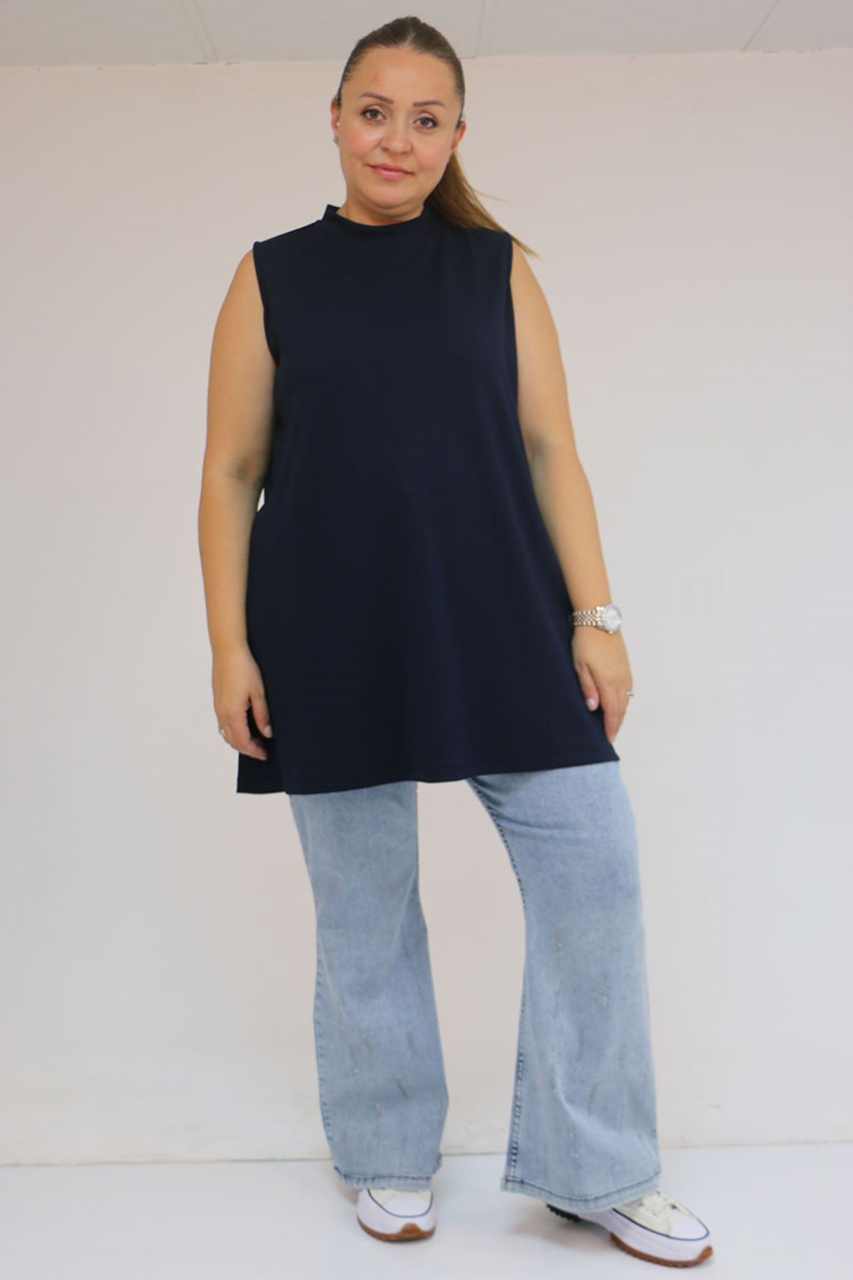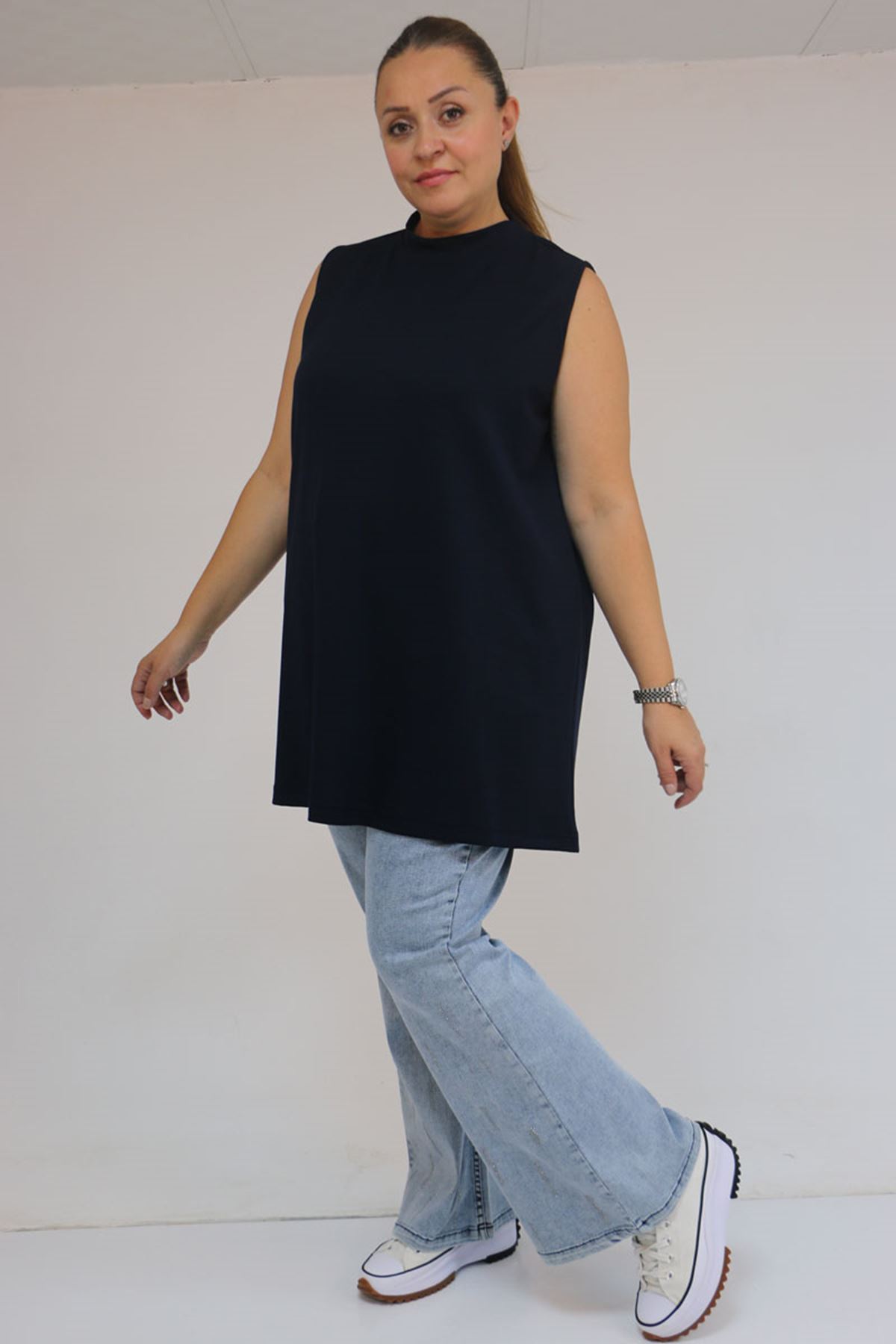 58509 Büyük Beden Uzun Modal İçlik - Lacivert