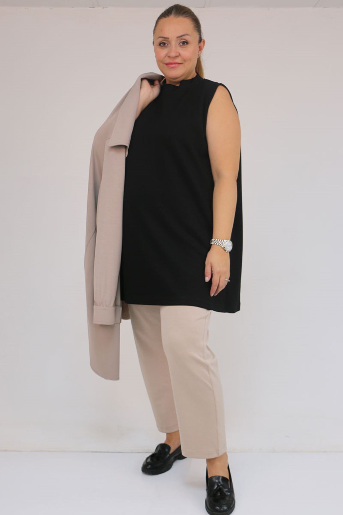 58509 Büyük Beden Uzun Modal İçlik - Siyah