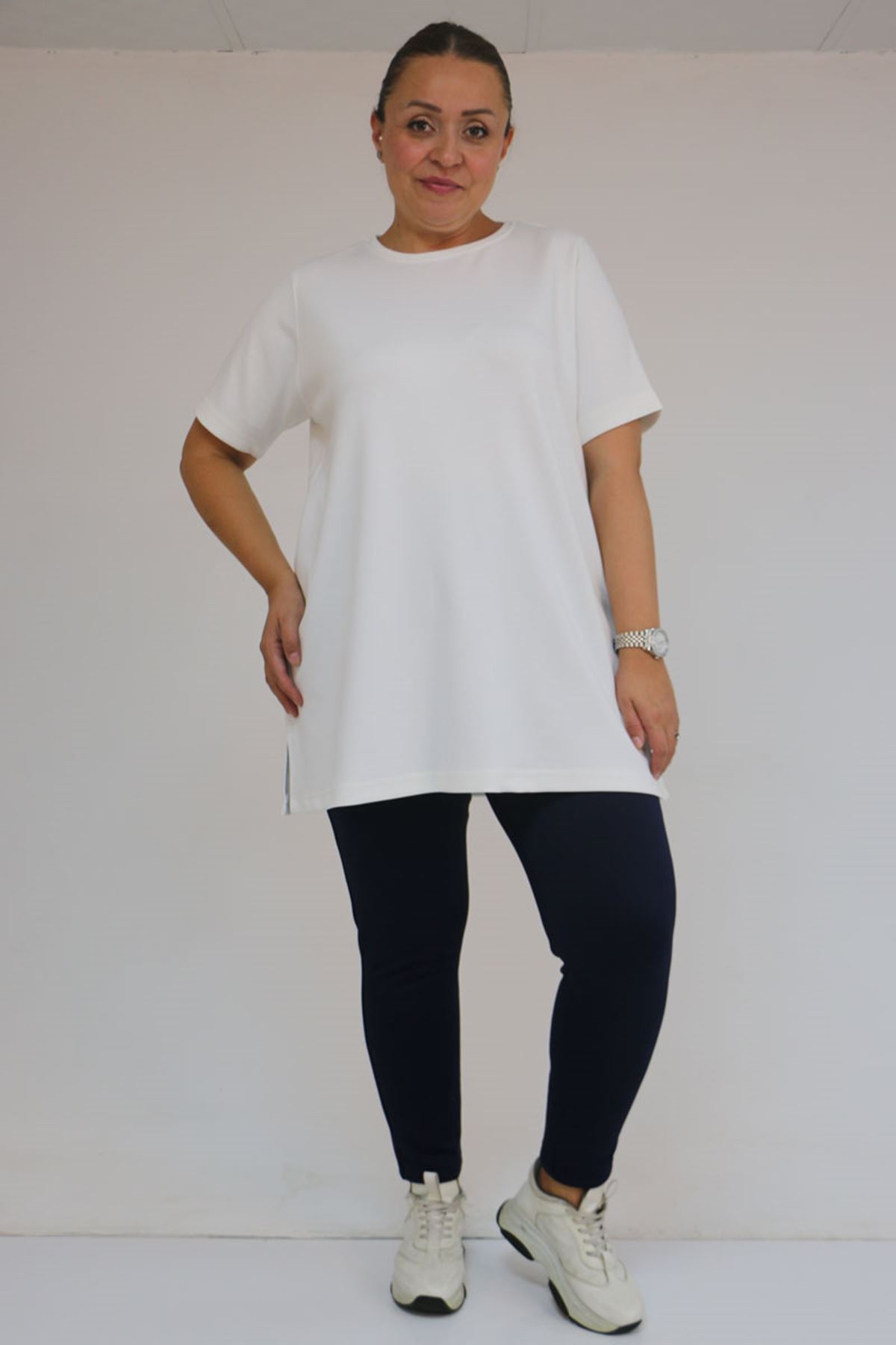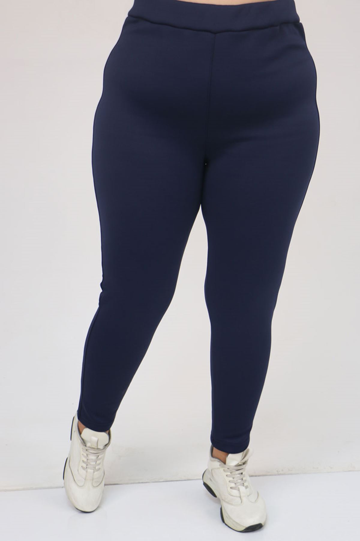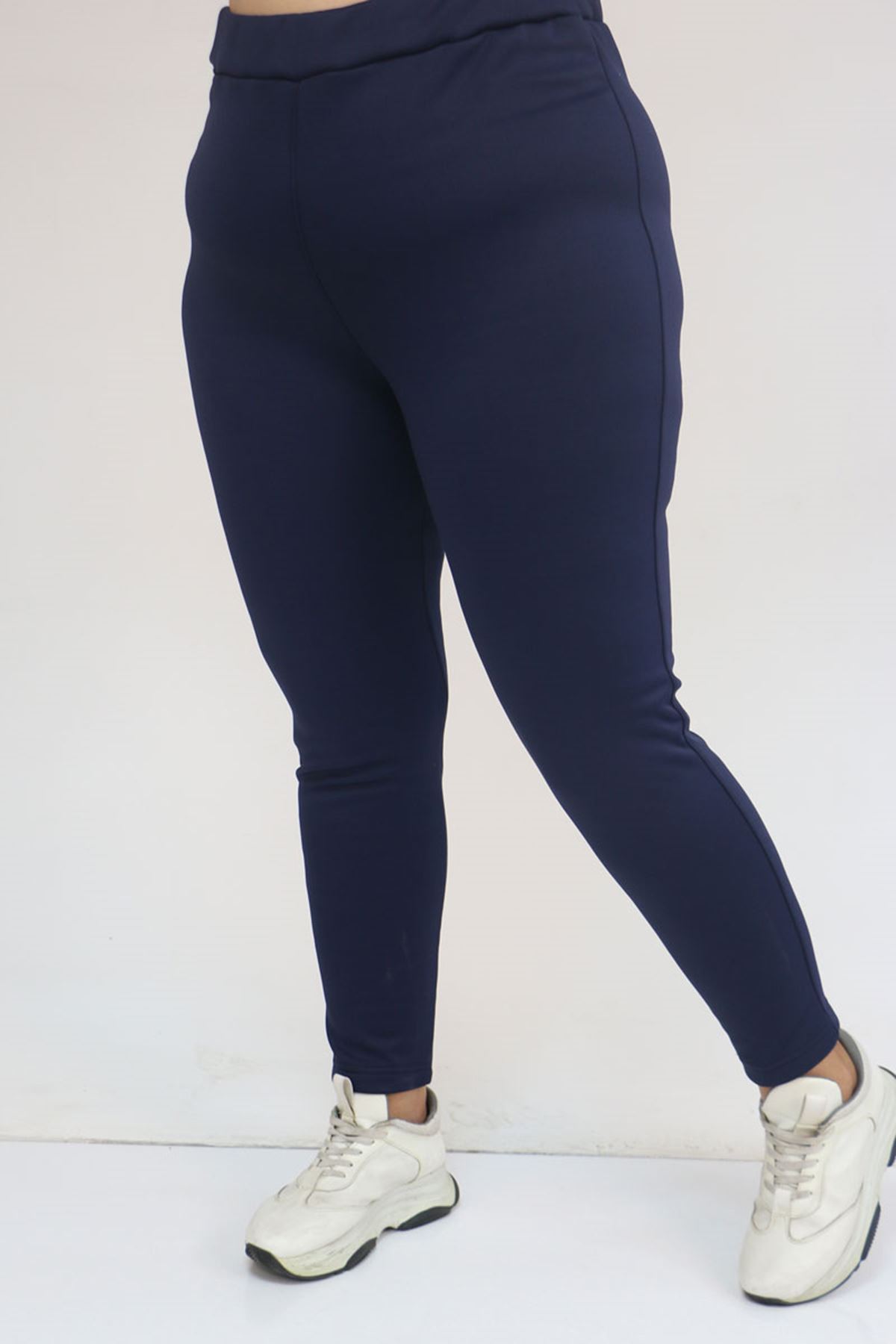 59503 Büyük Beden Beli Lastikli İçi Şardonlu Tayt - Lacivert