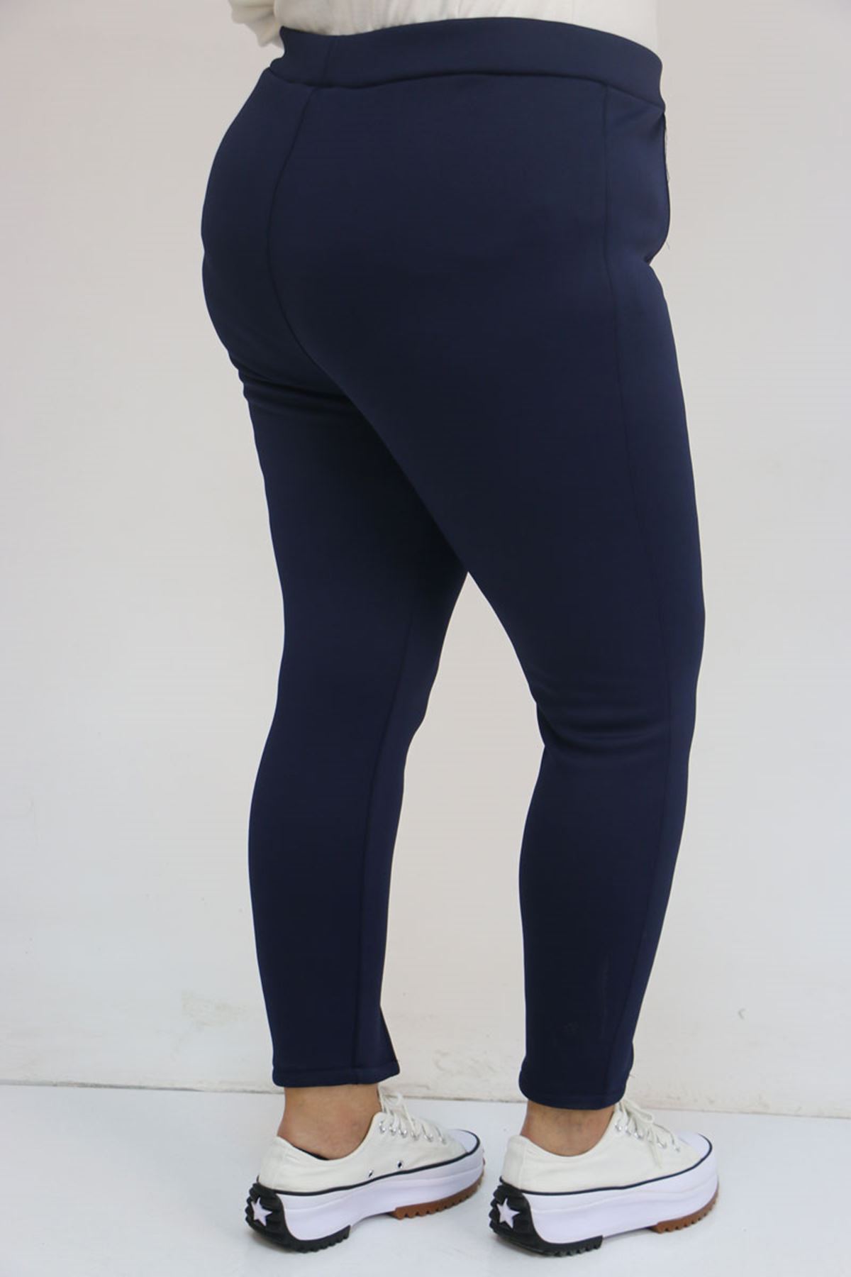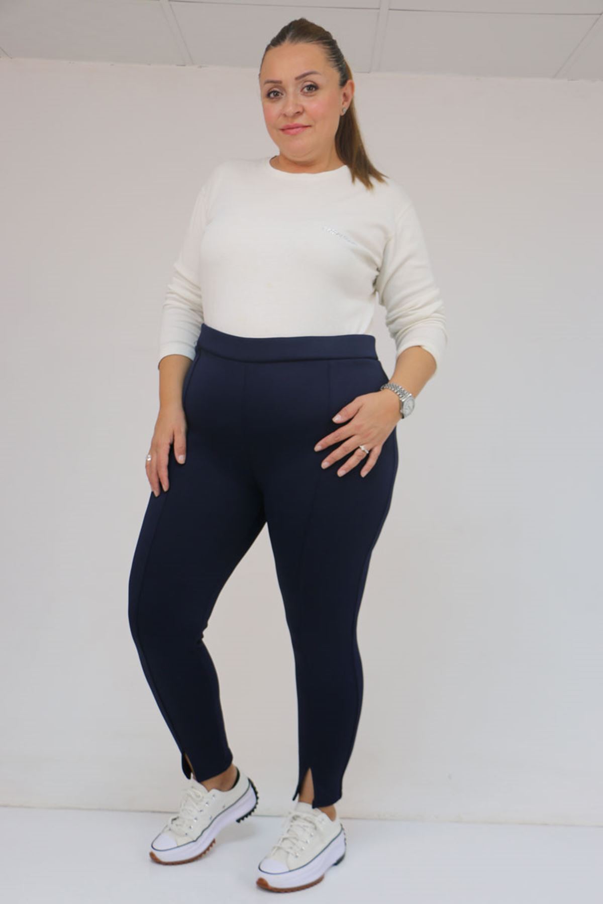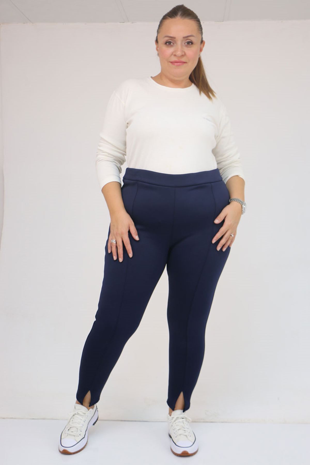 59507 Büyük Beden Önü Yırtmaçlı İçi Şardonlu Tayt - Lacivert