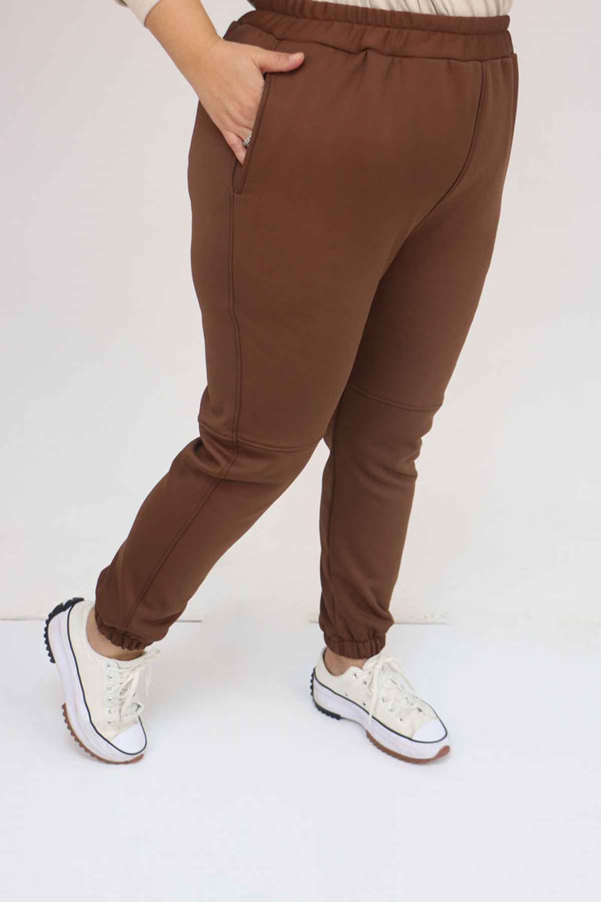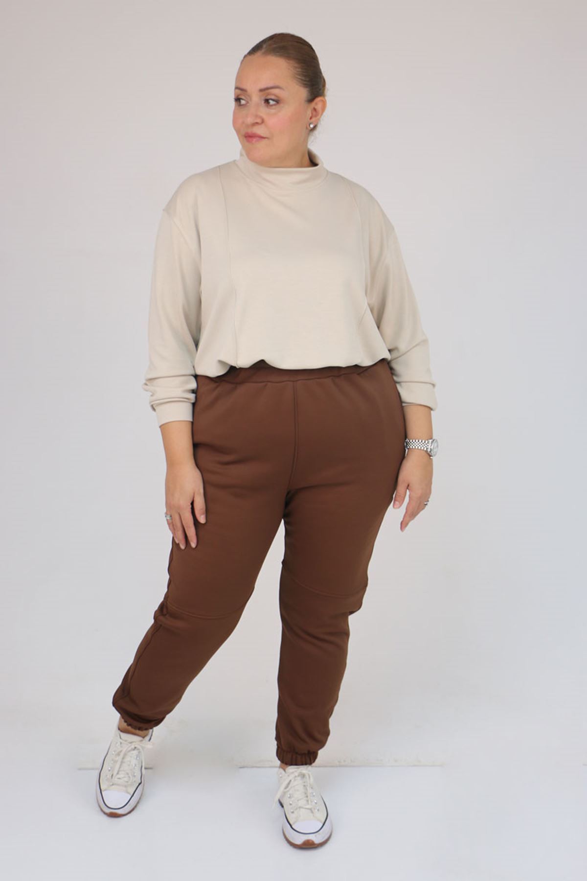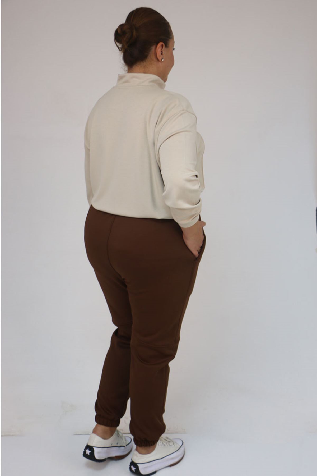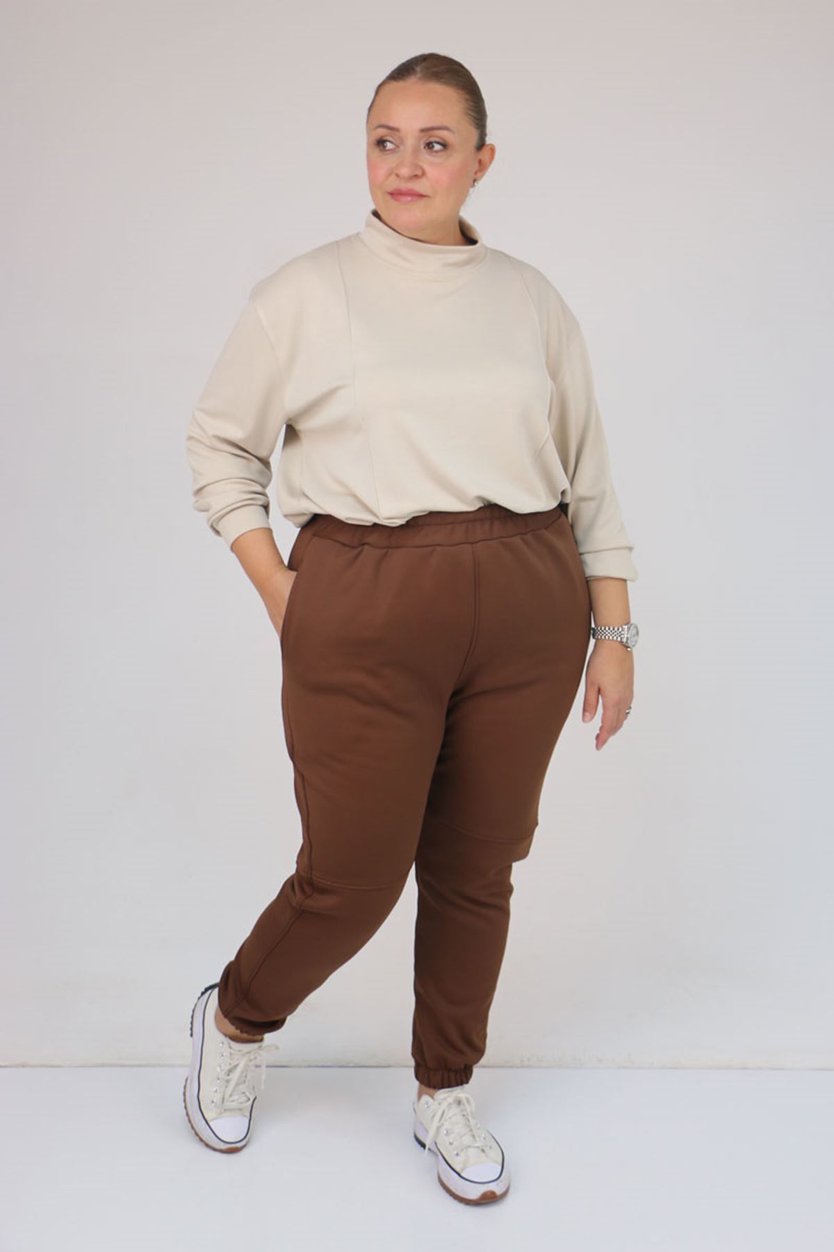 59508 Büyük Beden Parçalı Beli Lastikli Tayt - Kahve
