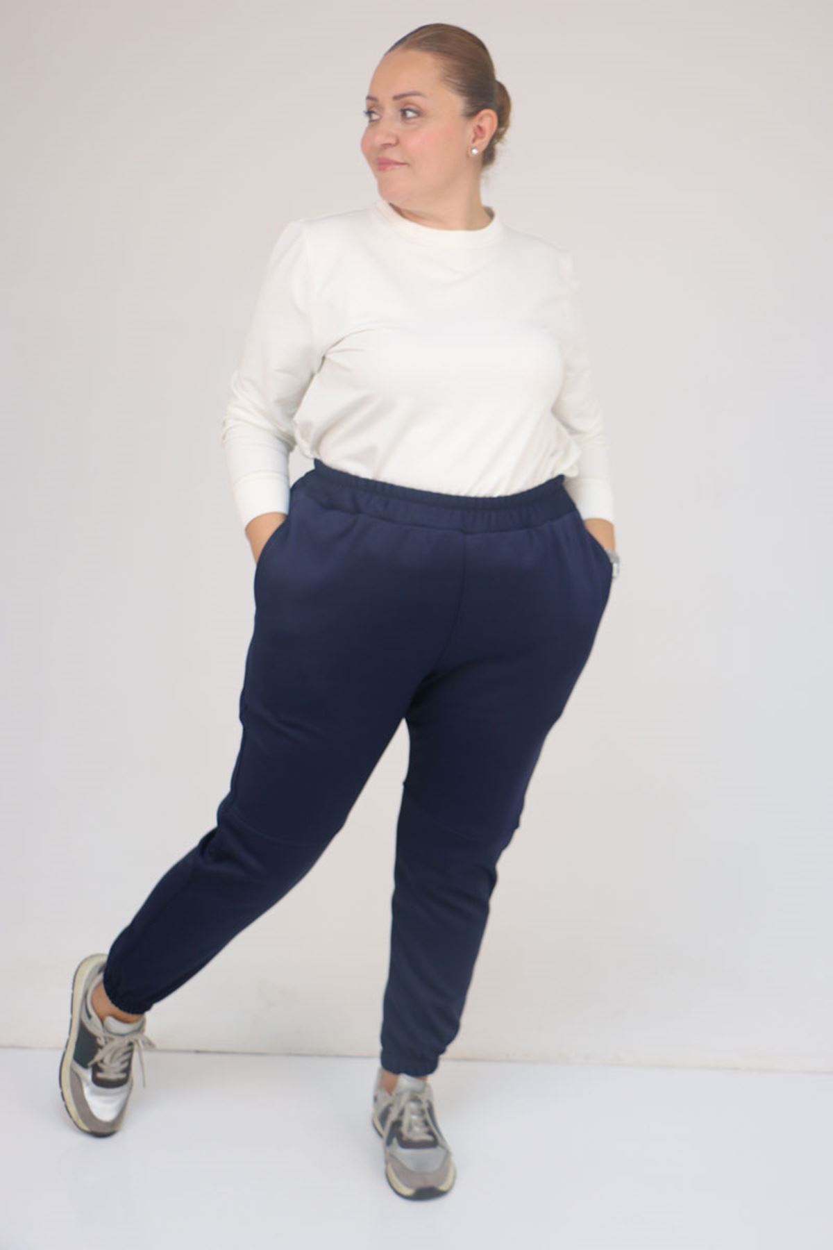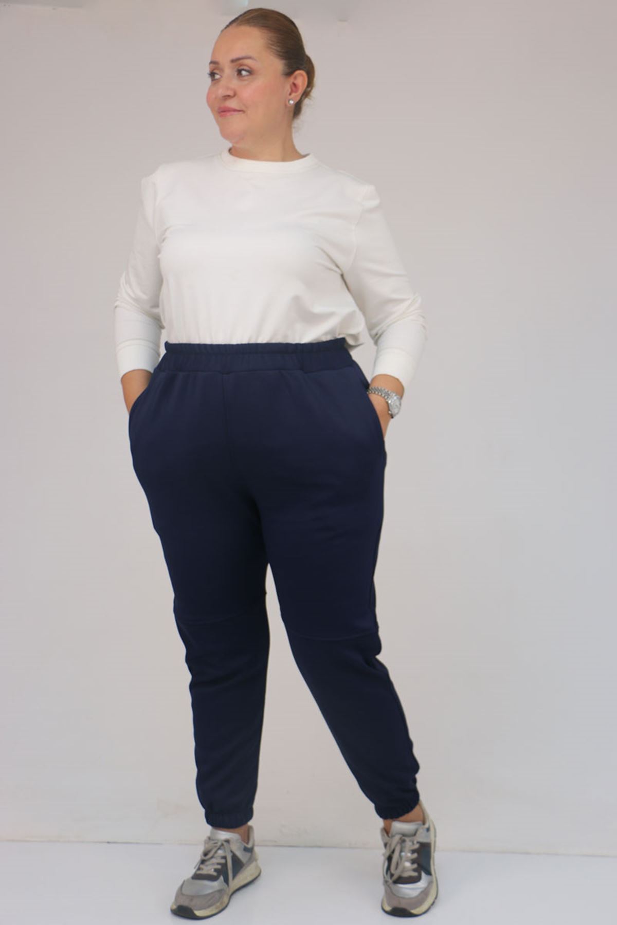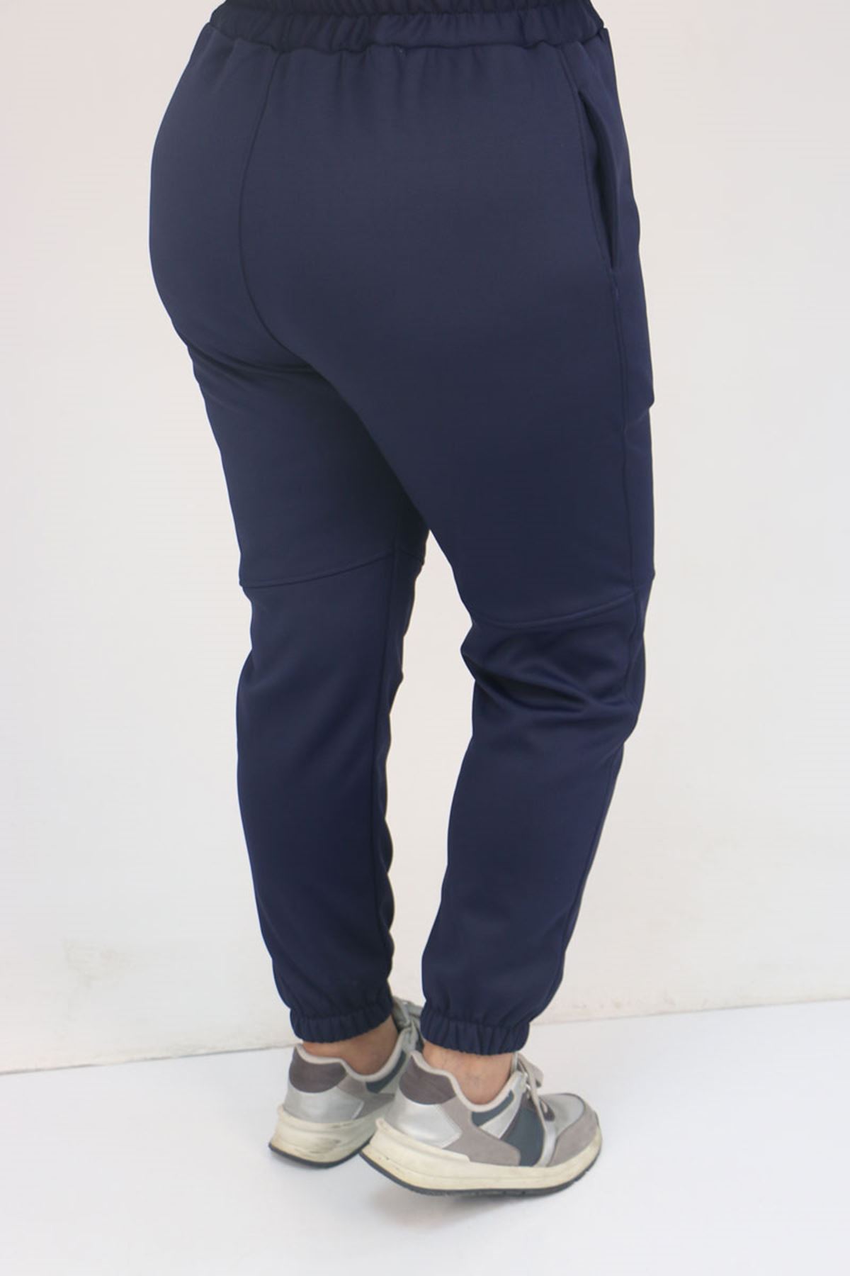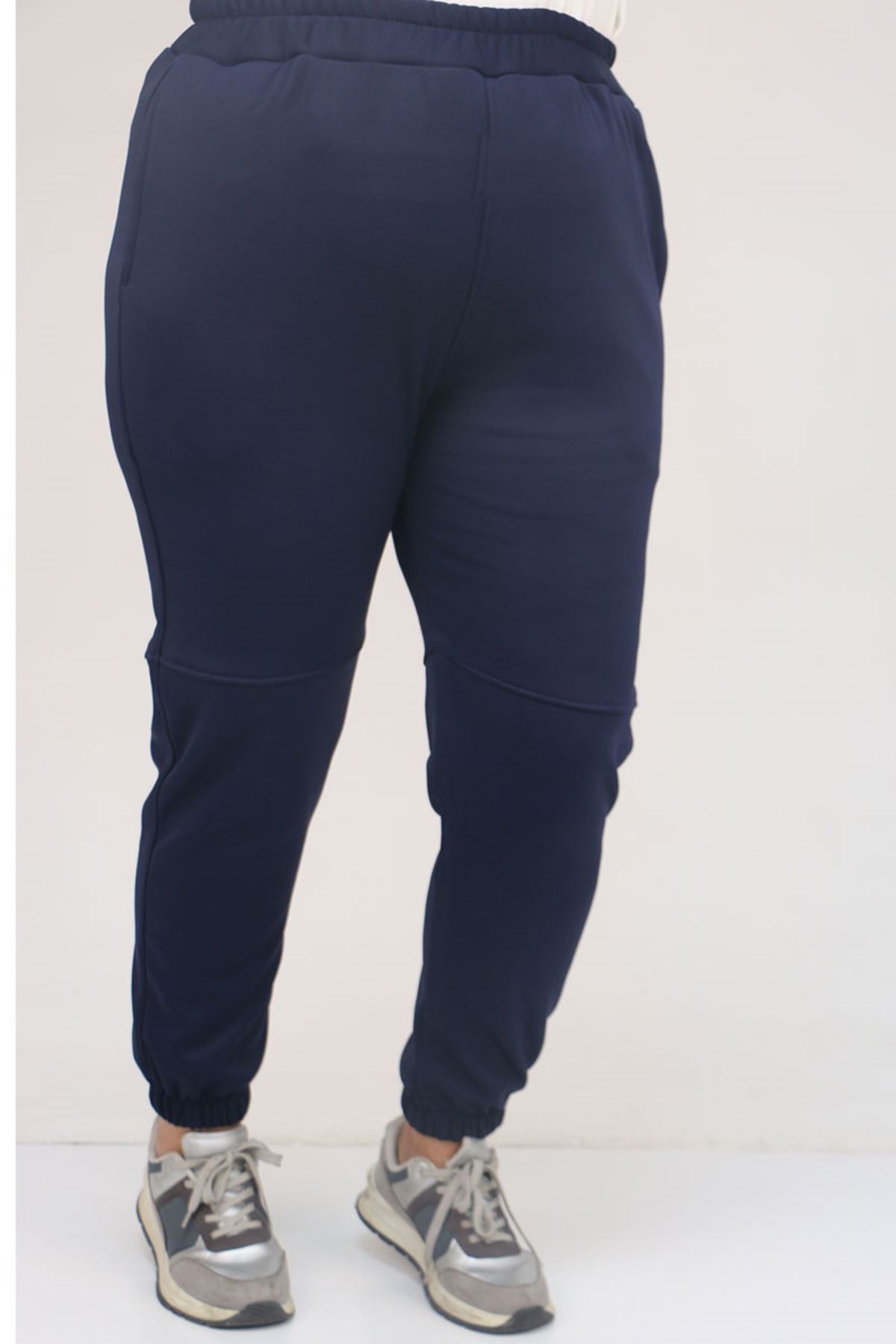 59508 Büyük Beden Parçalı Beli Lastikli Tayt - Lacivert
