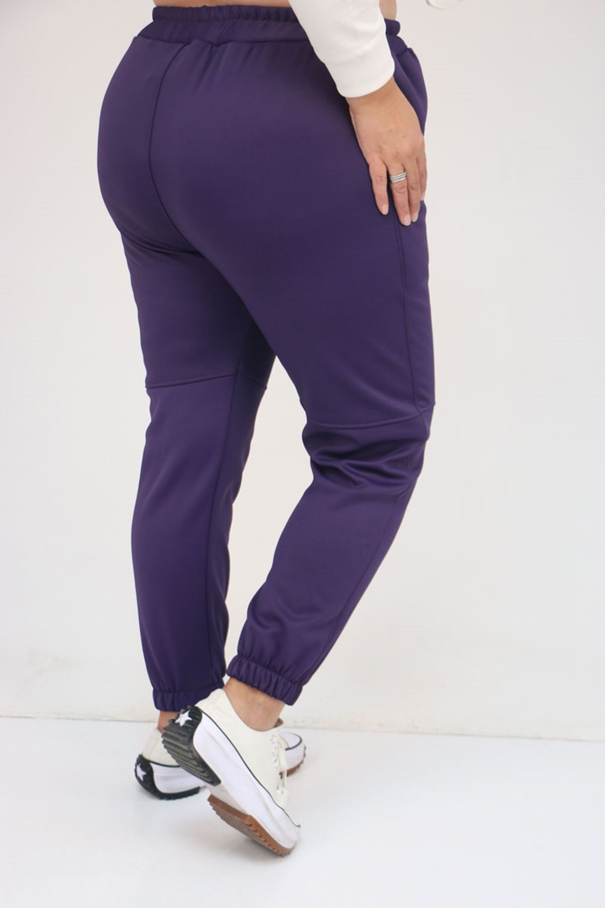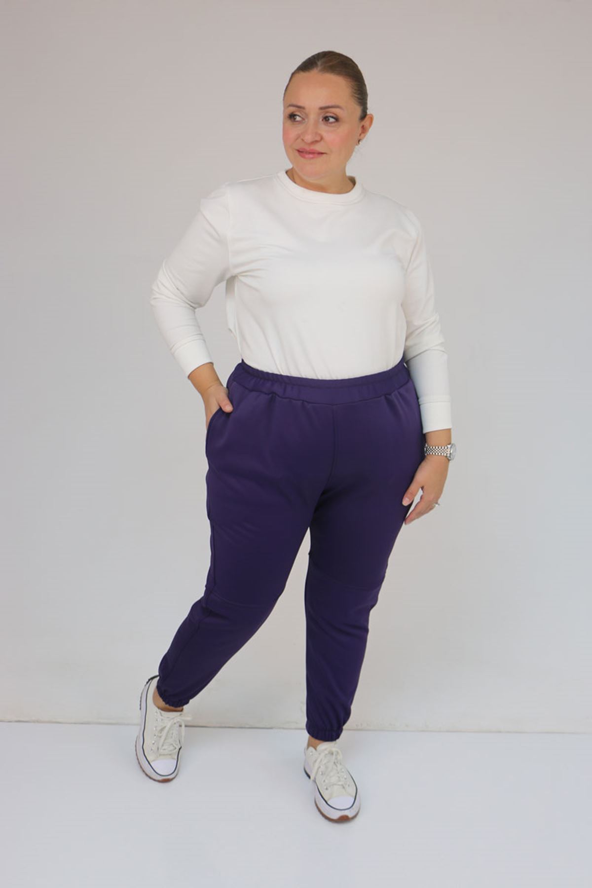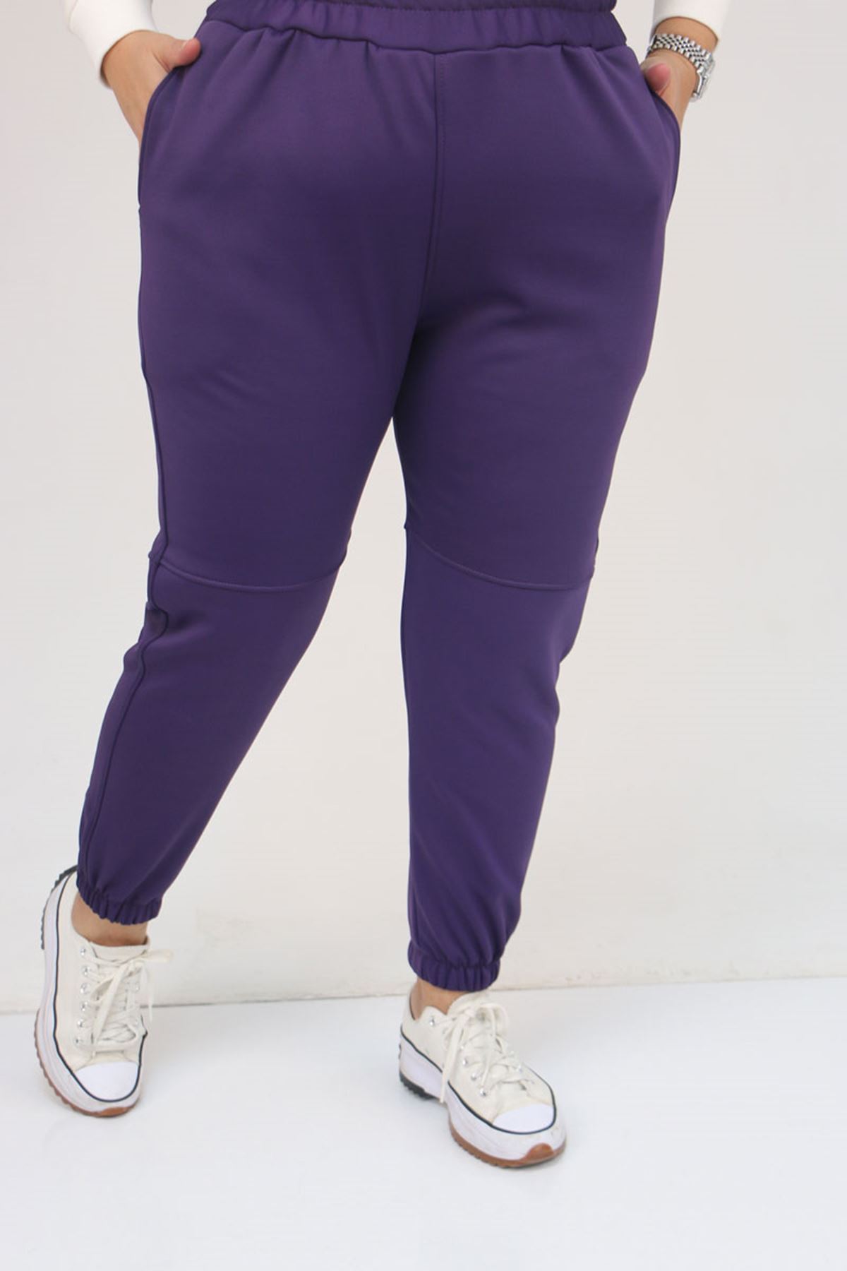59508 Büyük Beden Parçalı Beli Lastikli Tayt - Mor