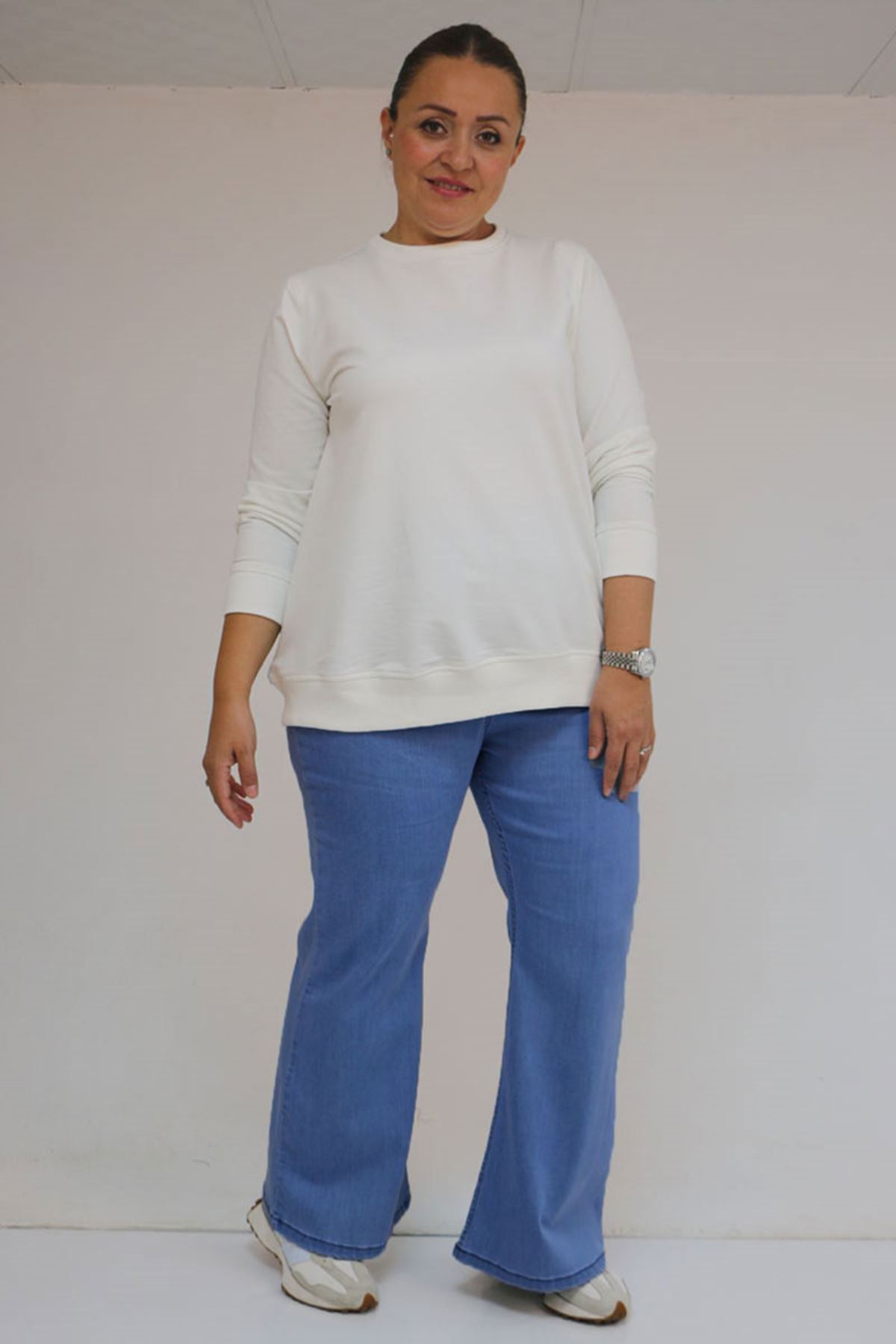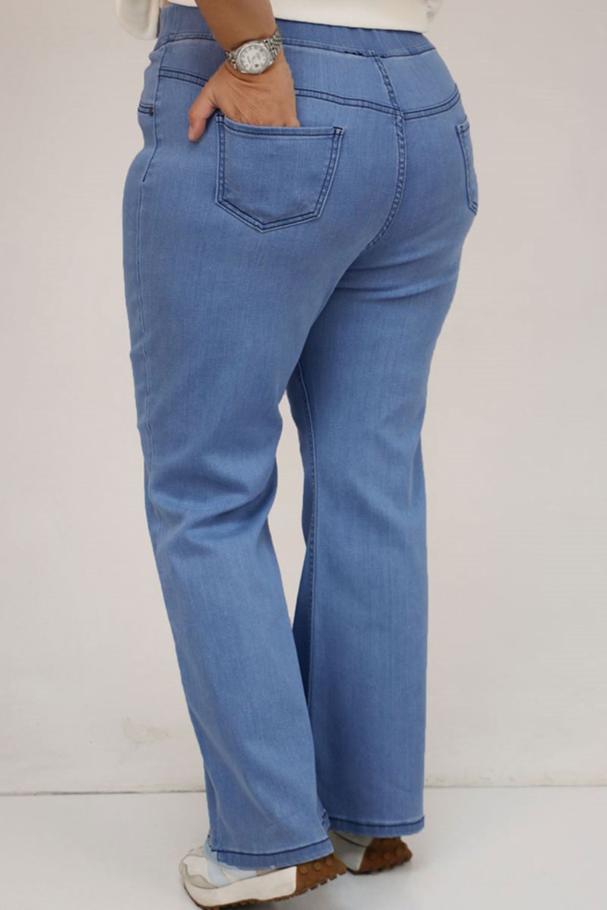 9137-19 Büyük Beden Beli Lastikli İspanyol Paça Kot Pantolon - Açık Mavi